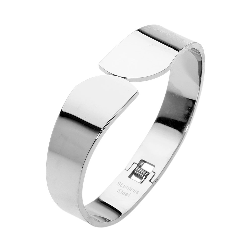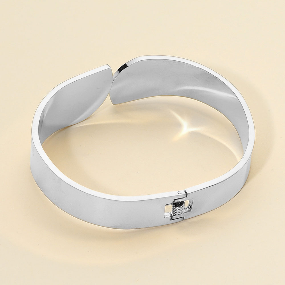 Stainless Steel Modern Wide Hinged Bangle Bracelet