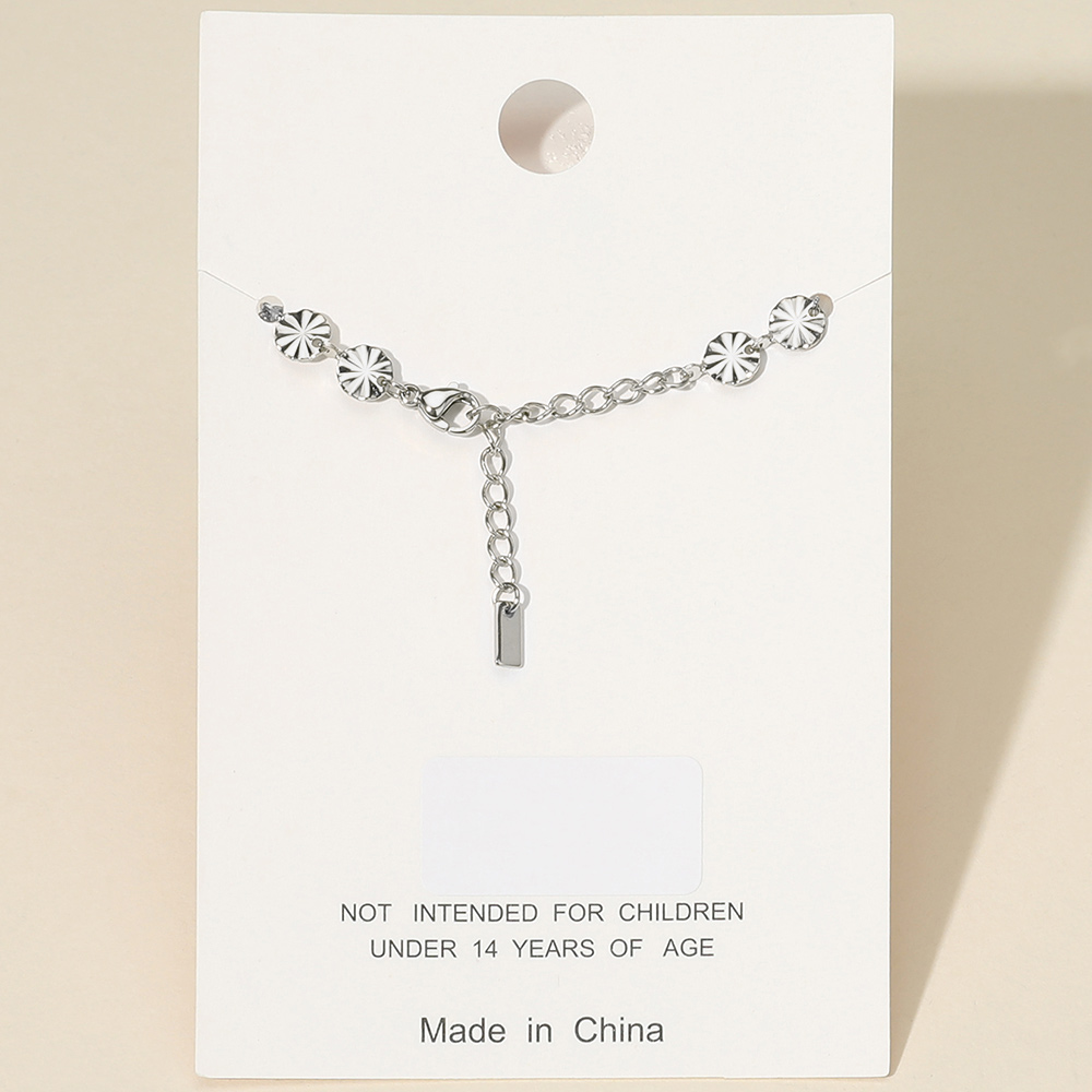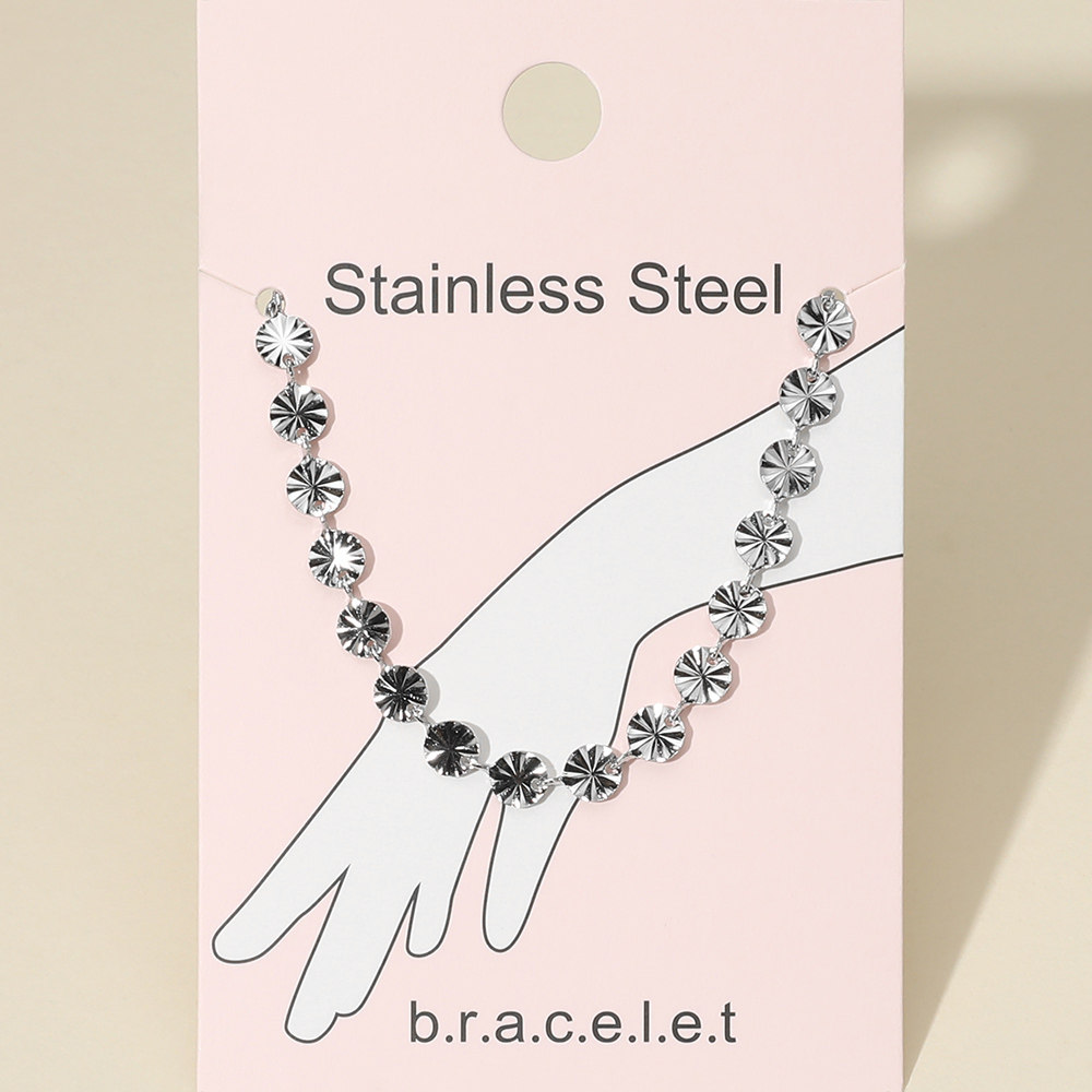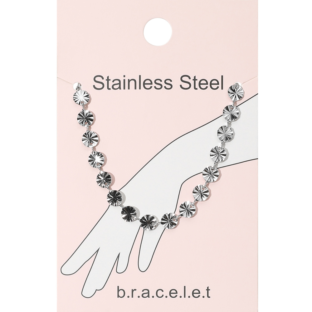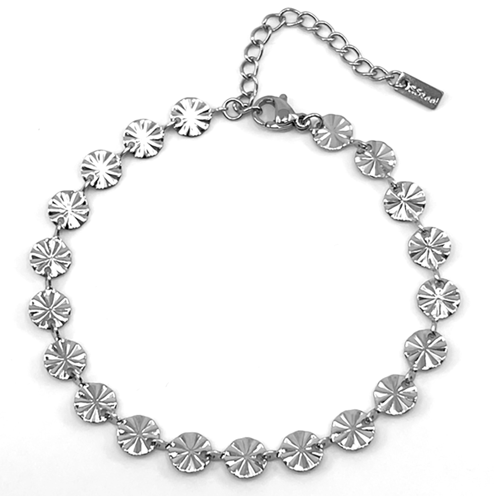 Stainless Steel Radiant Textured Flat Disc Link Chain Bracelet
