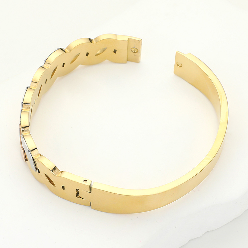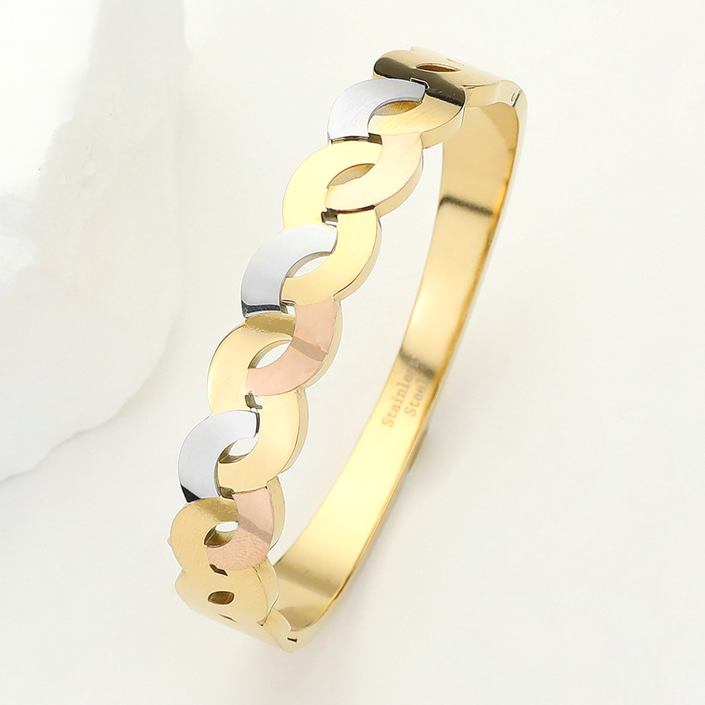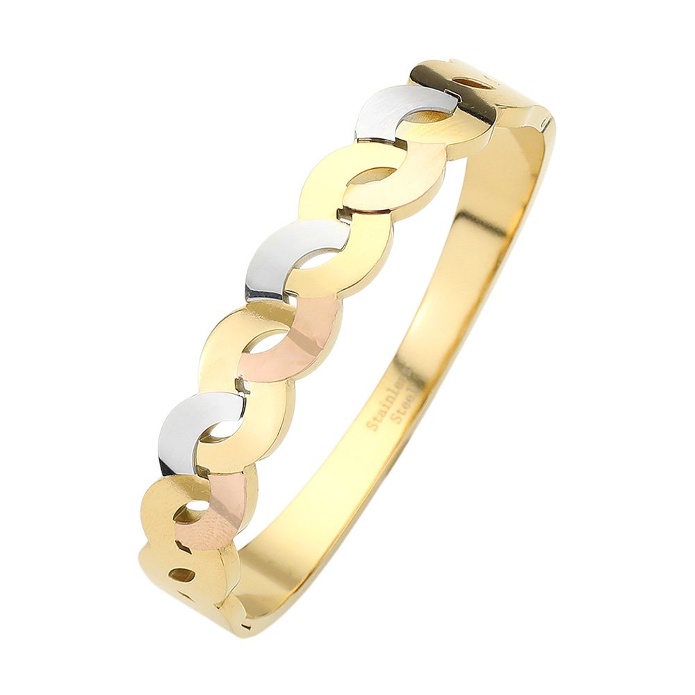 Stainless Steel Three Tone Hinged Bangle Bracelet