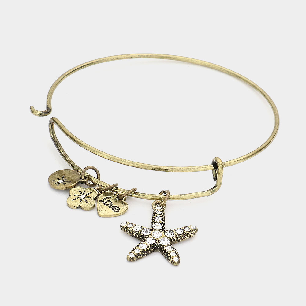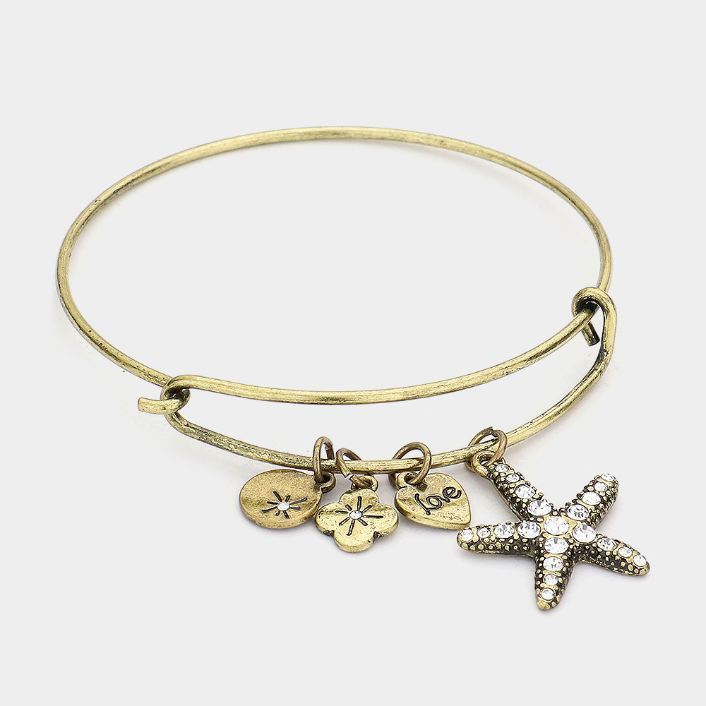 Textured Metal Starfish Charm Accent Resin Pebble Beaded Stretch Bracelet
