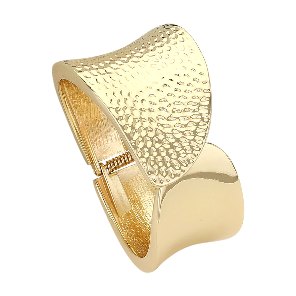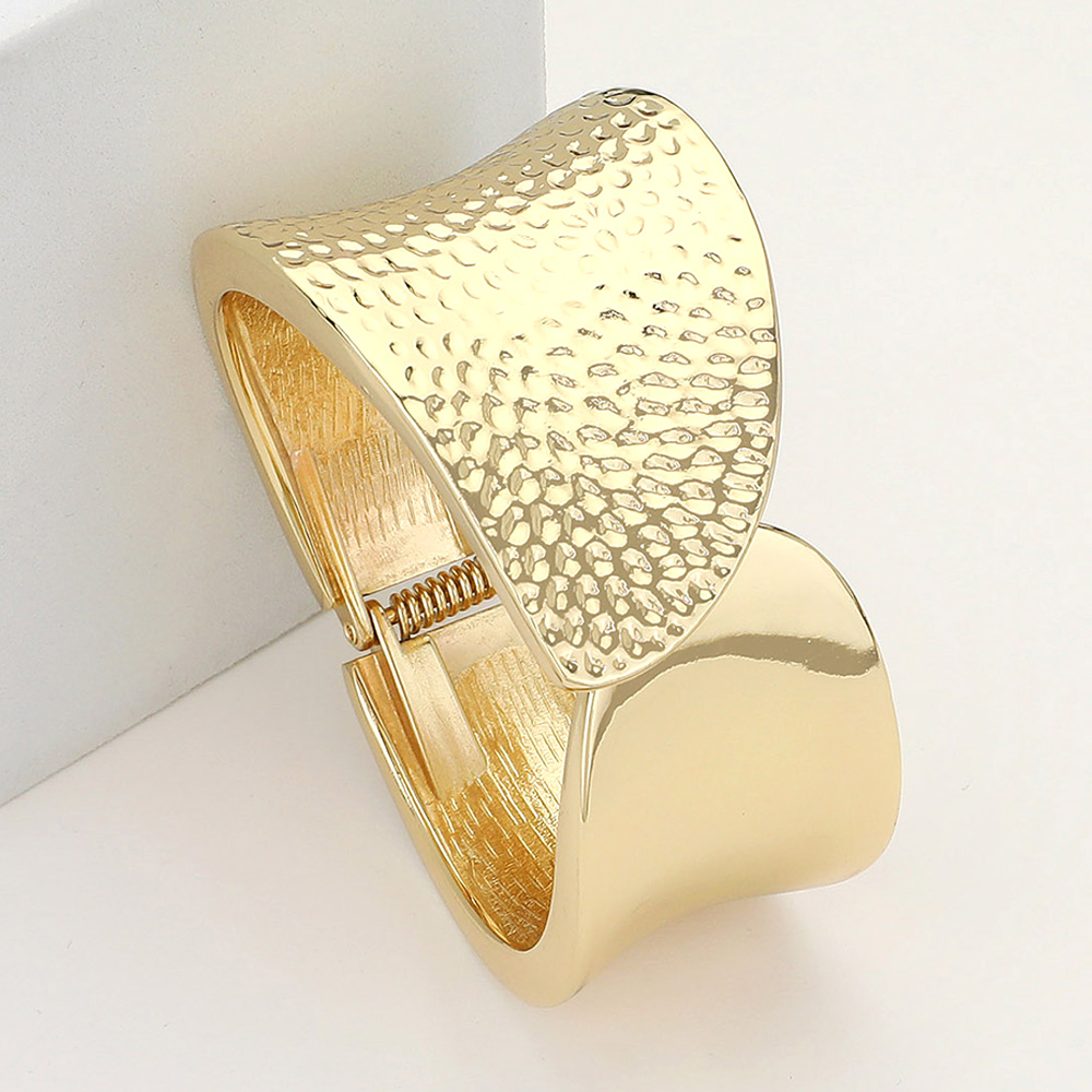 Enamel Bow Accent Hammered Metal Bar Beaded Stretch Bracelet