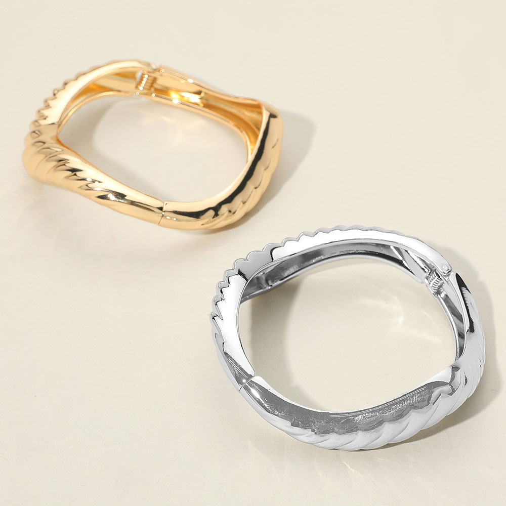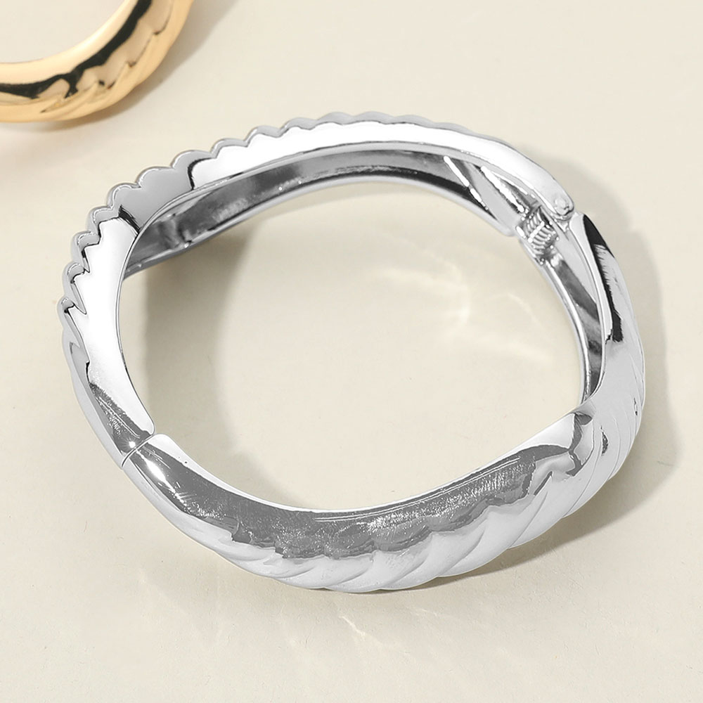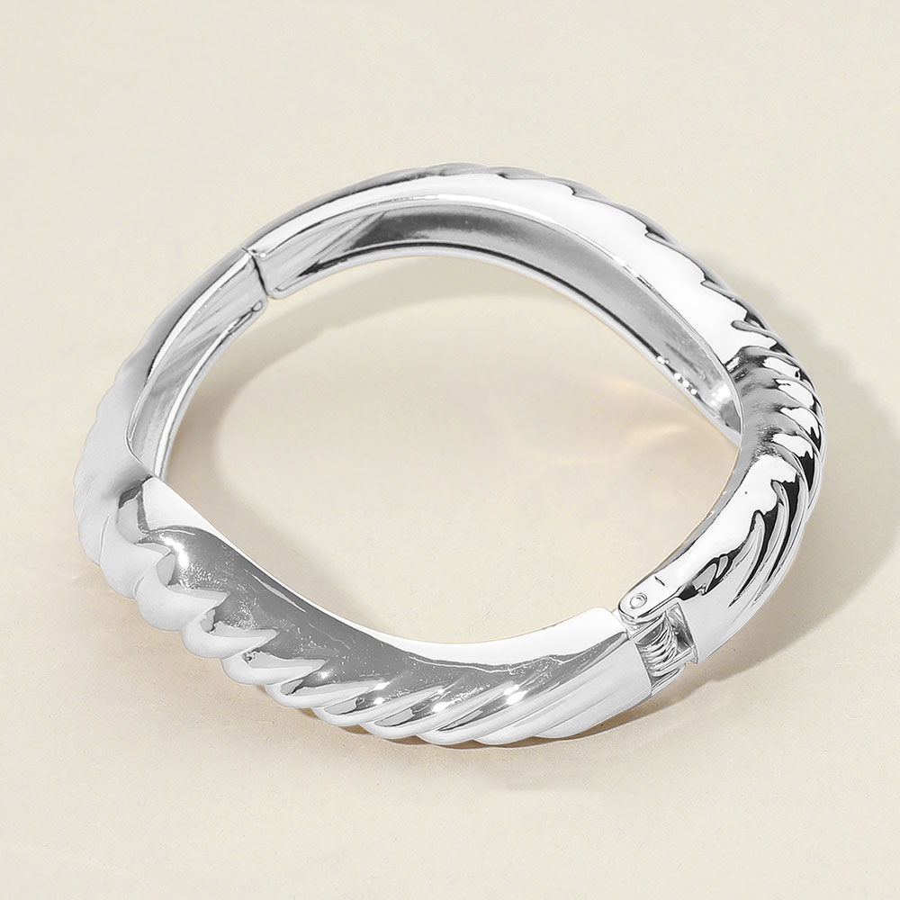 Textured Metal Sculptural Hinged Bangle Bracelet