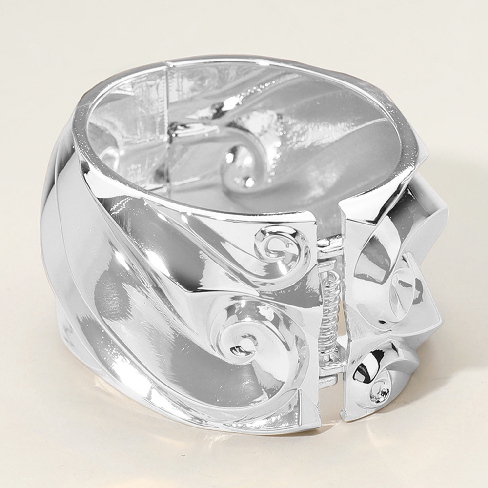 Textured Metal Wide Hinged Bangle Bracelet