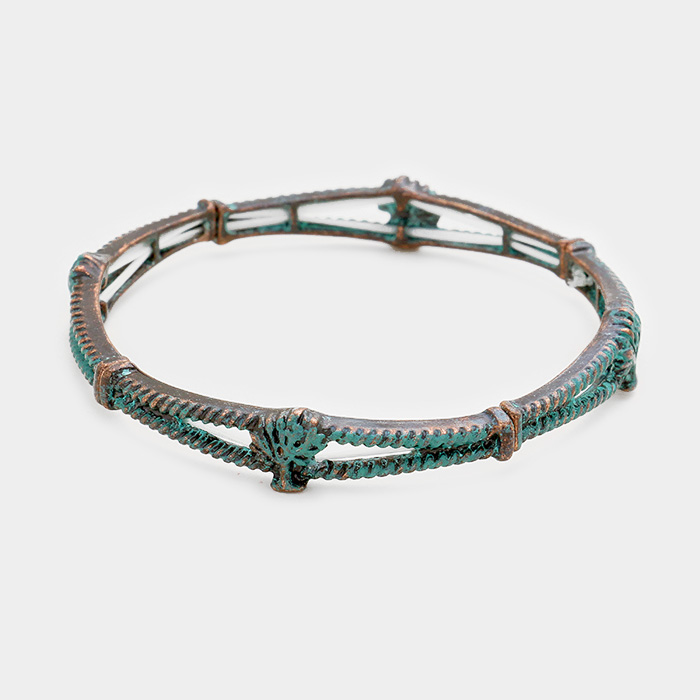 Antique Metal Tree of Life Stone Bezel Charm Station Toggle Bracelet