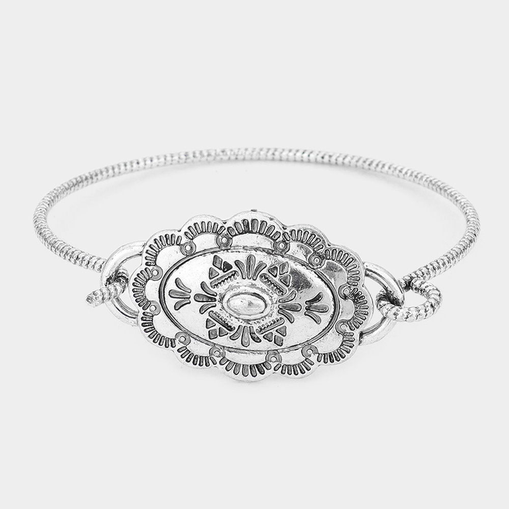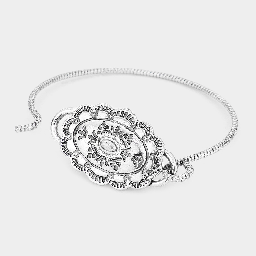 Tribal Round Howlite Detail Braided Metal Cuff Bracelet