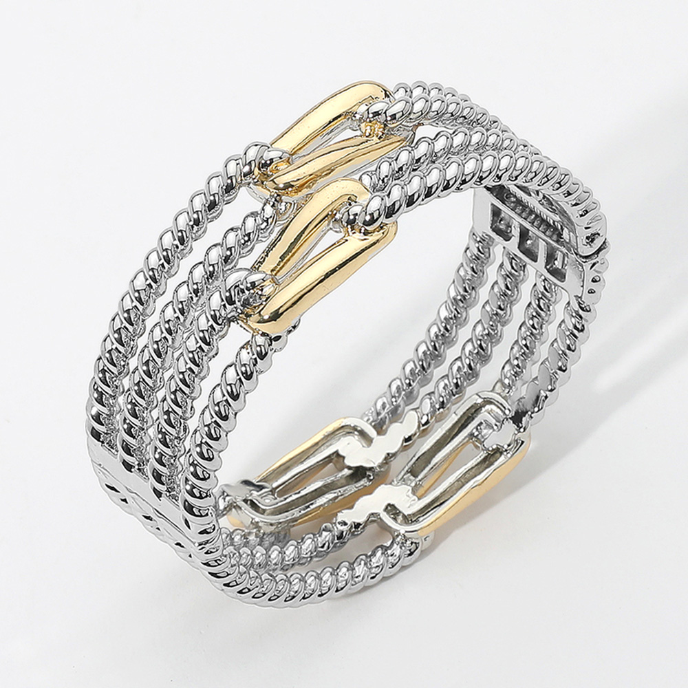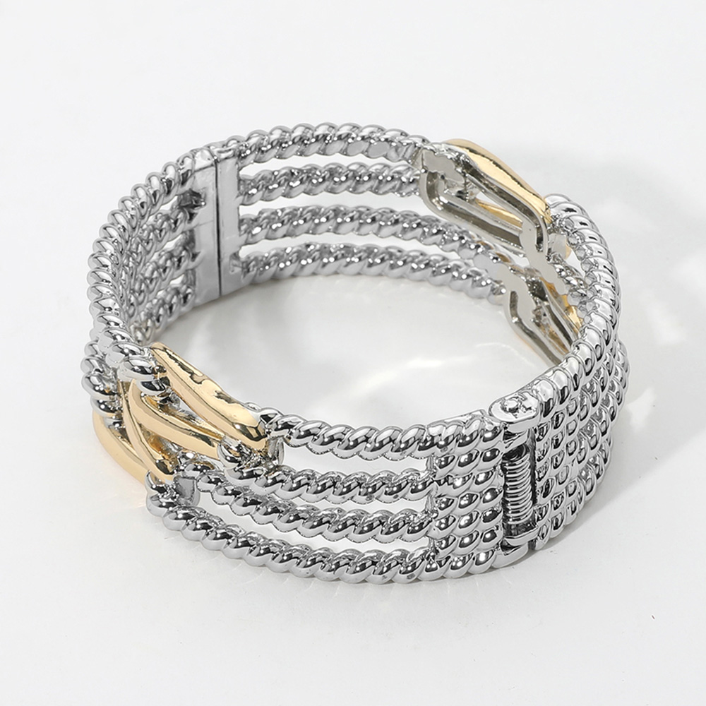 Details • Size : 0.8" H, 2.4" D • Hinged Closure • Sophisticated and modern, this multi-strand link chain bangle bracelet features layered strands accented with bold links for a striking design. Its sleek detailing adds elegance and versatility, making it a standout accessory perfect for elevating both casual and formal looks with timeless appeal.