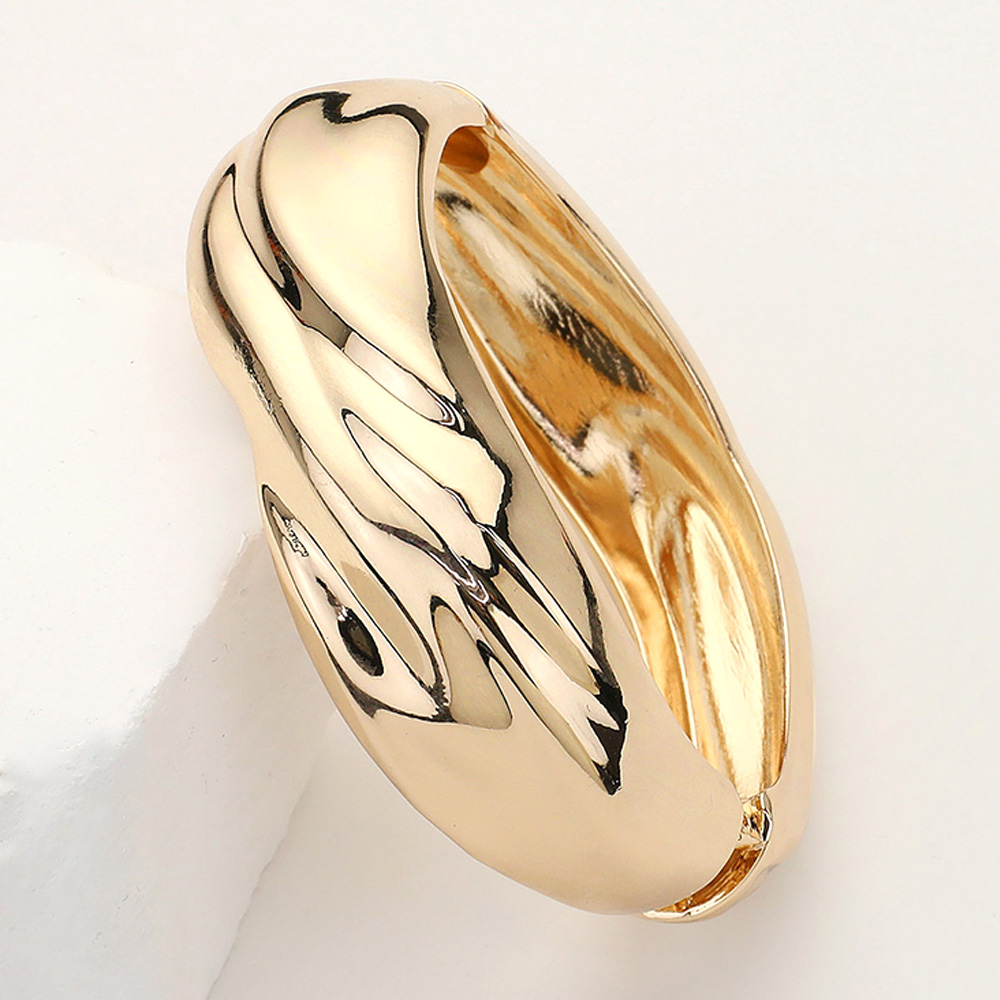 14K Gold Dipped Ribbed Dome Half Hoop Earrings