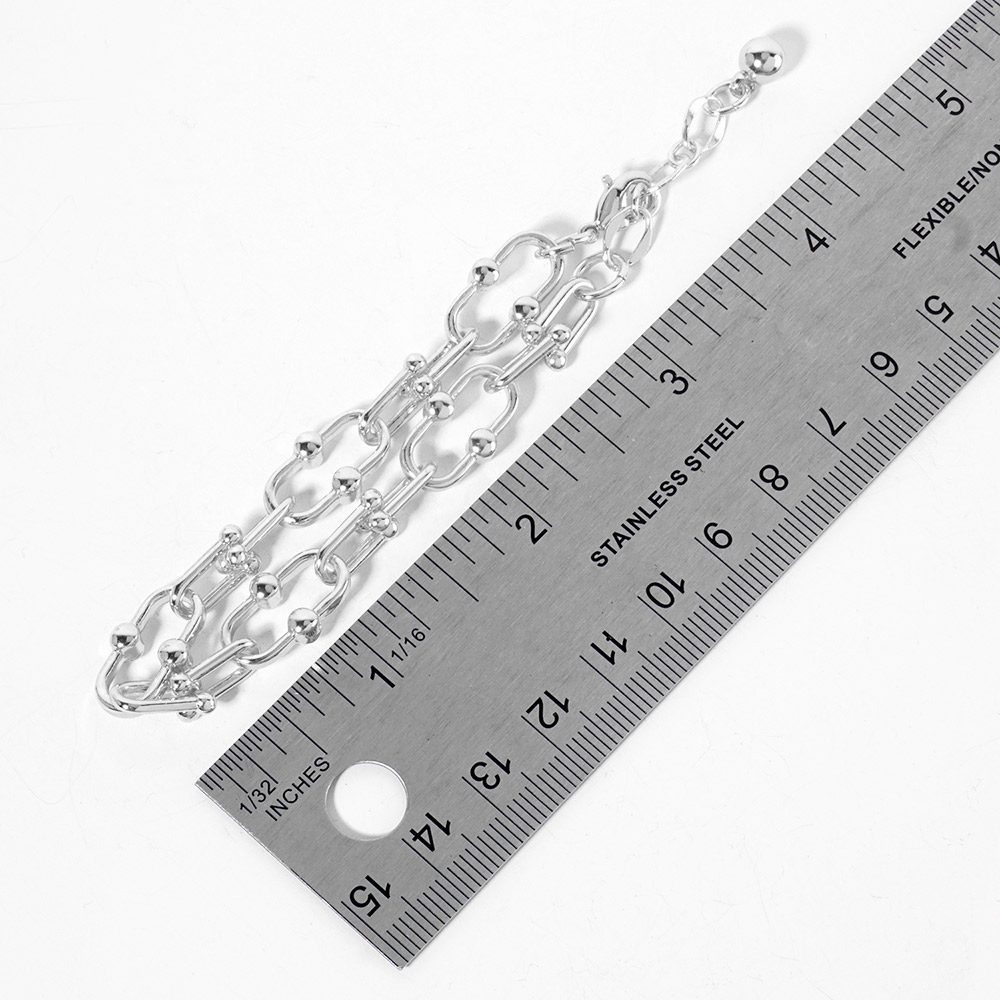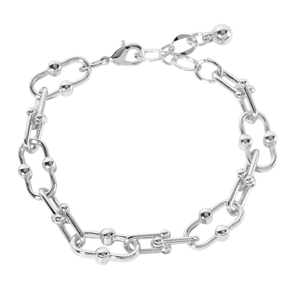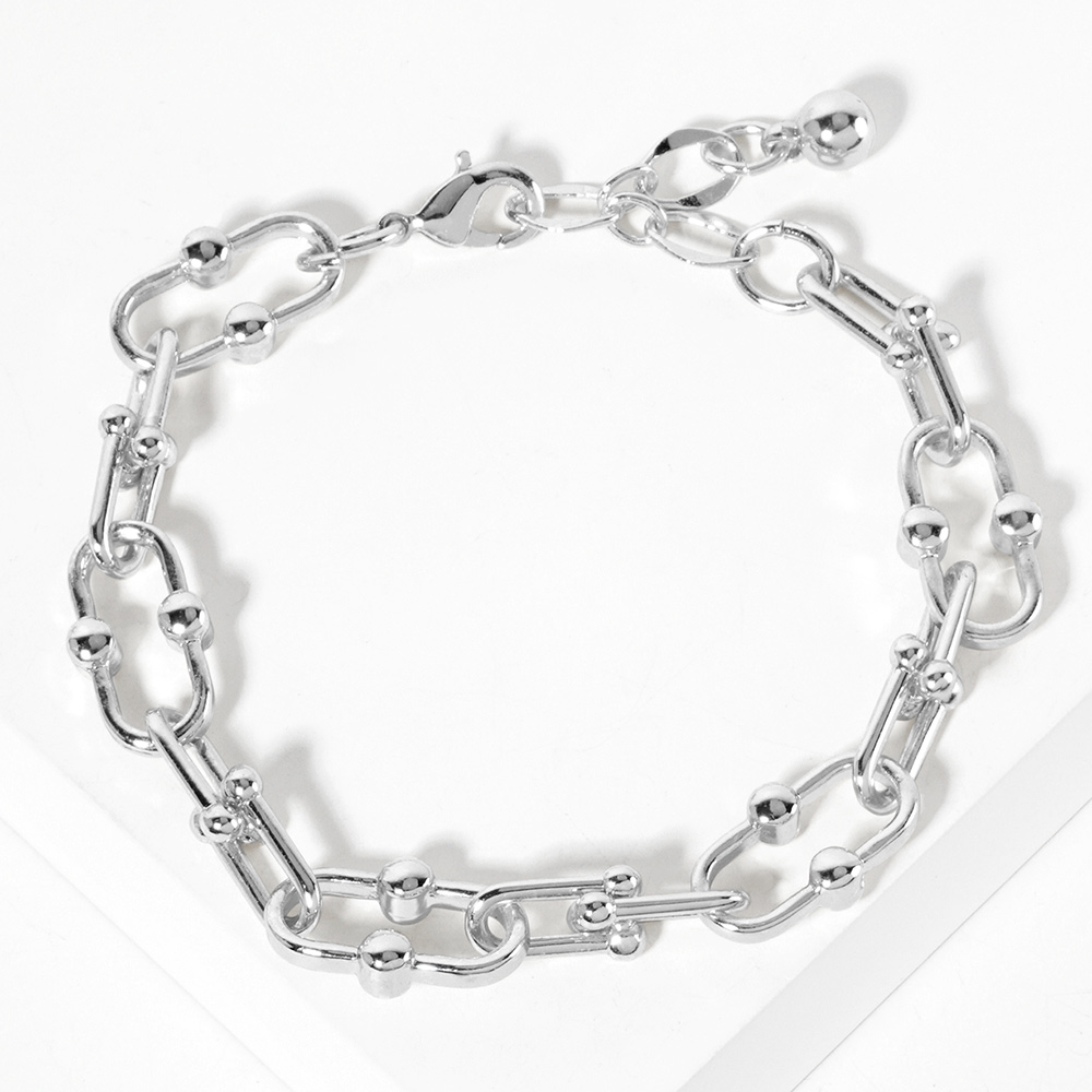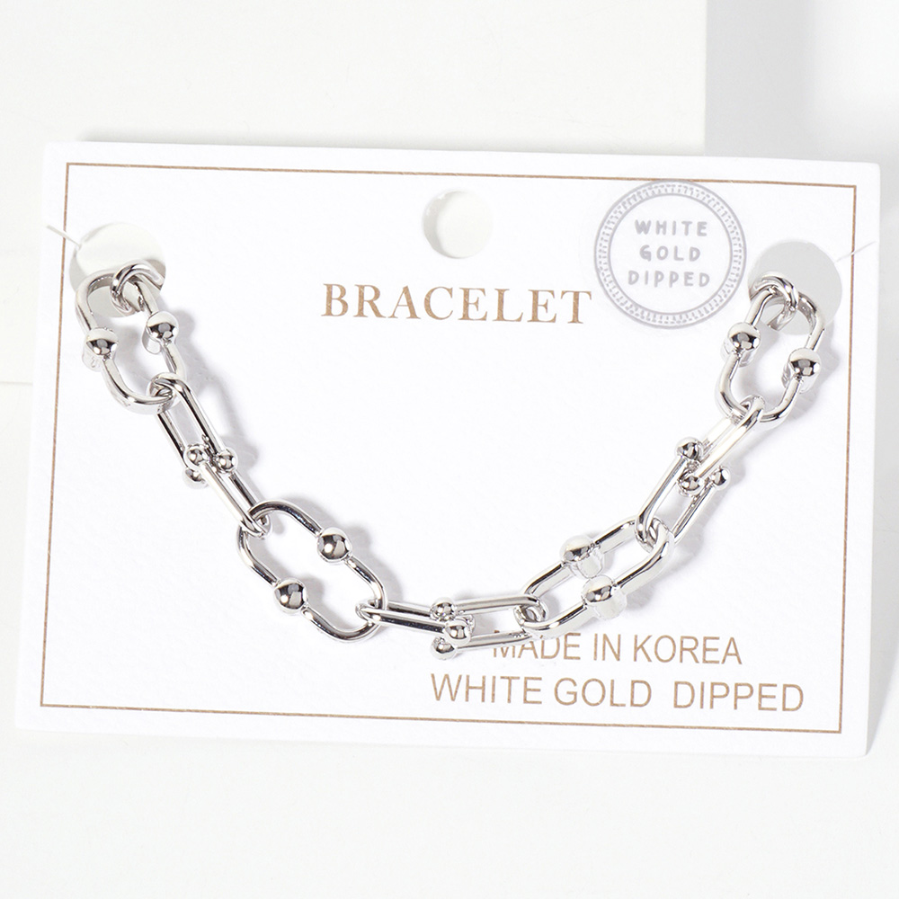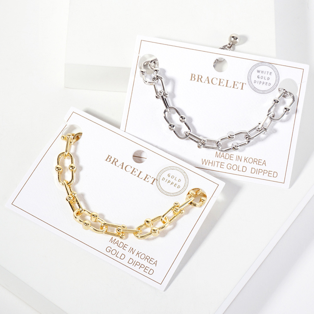Details • Size : 0.4" H, 6.5" + 1.5" L • Lobster Clasp Closure • Add a refined touch to your ensemble with this modern link bracelet, featuring a clean open-link design accented by polished beaded details. Perfect for layering or wearing solo, this versatile piece effortlessly complements both casual and formal attire. • Lead and Nickel Compliant • Made In Korea • Gold Dipped