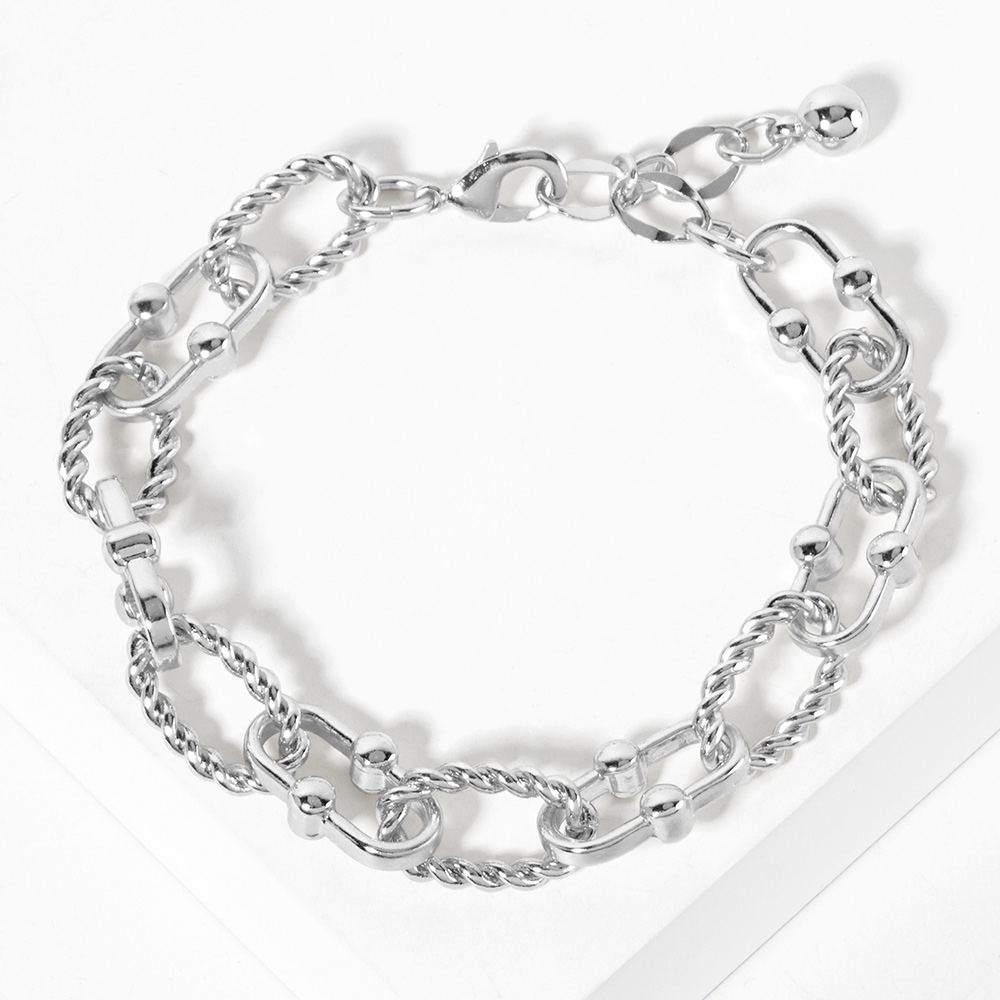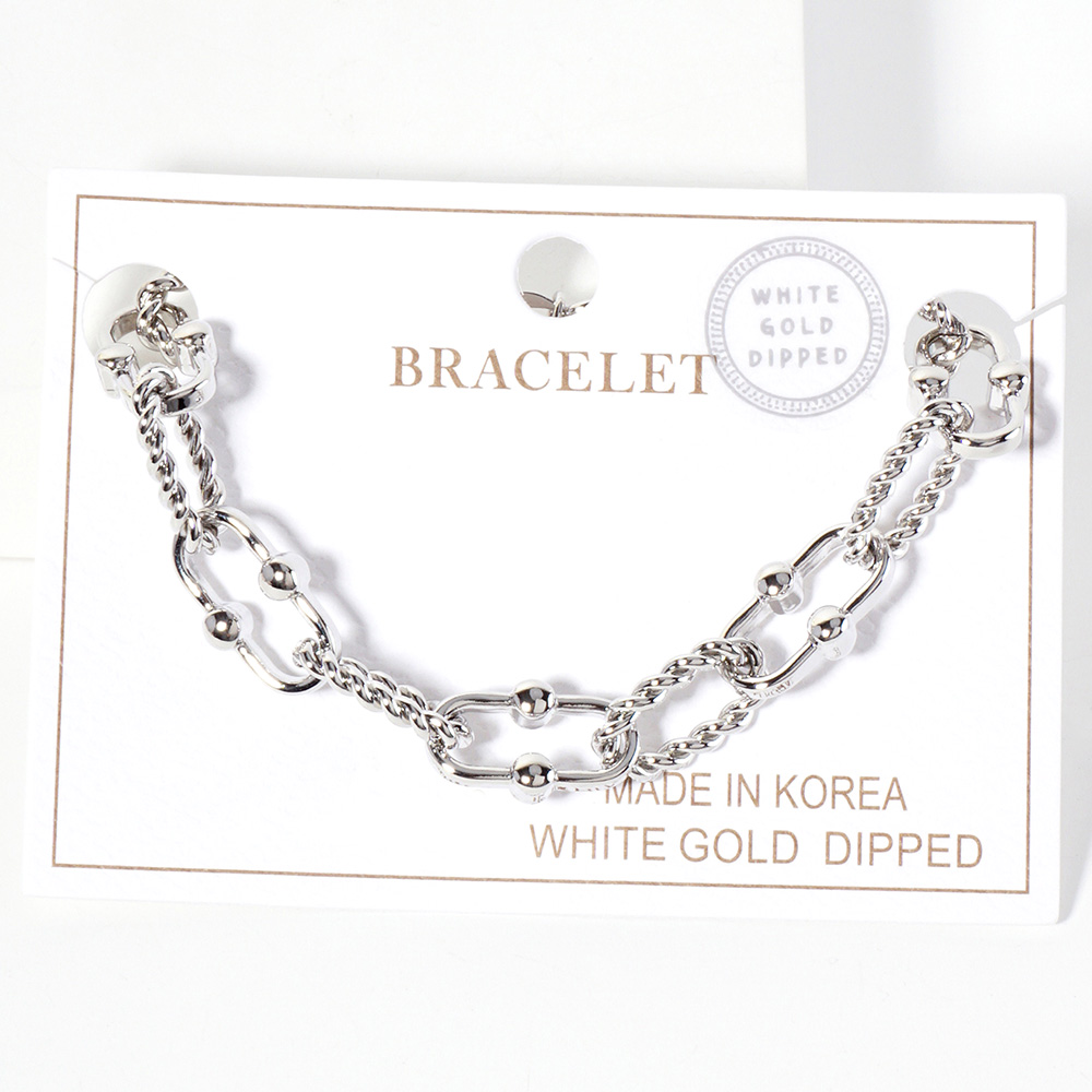 Details • Size : 0.4" H, 6.5" + 1.5" L • Lobster Clasp Closure • Elevate your everyday look with this twisted rope chain bracelet featuring interlocking links and elegant beaded accents. Its modern design blends texture and detail, making it a standout accessory for casual or dressy outfits while maintaining a timeless appeal. • Lead and Nickel Compliant • Made In Korea • Gold Dipped