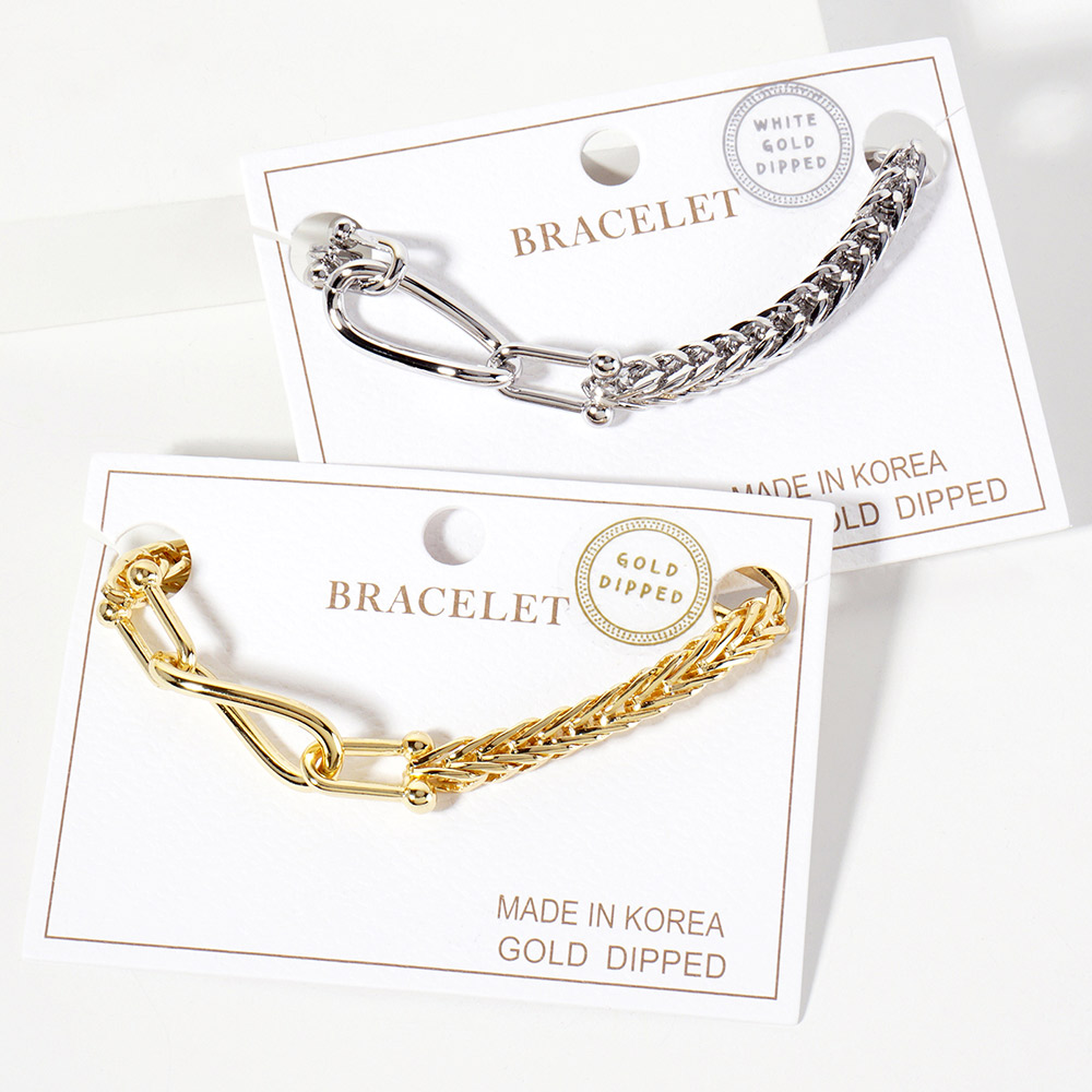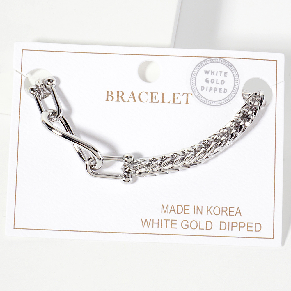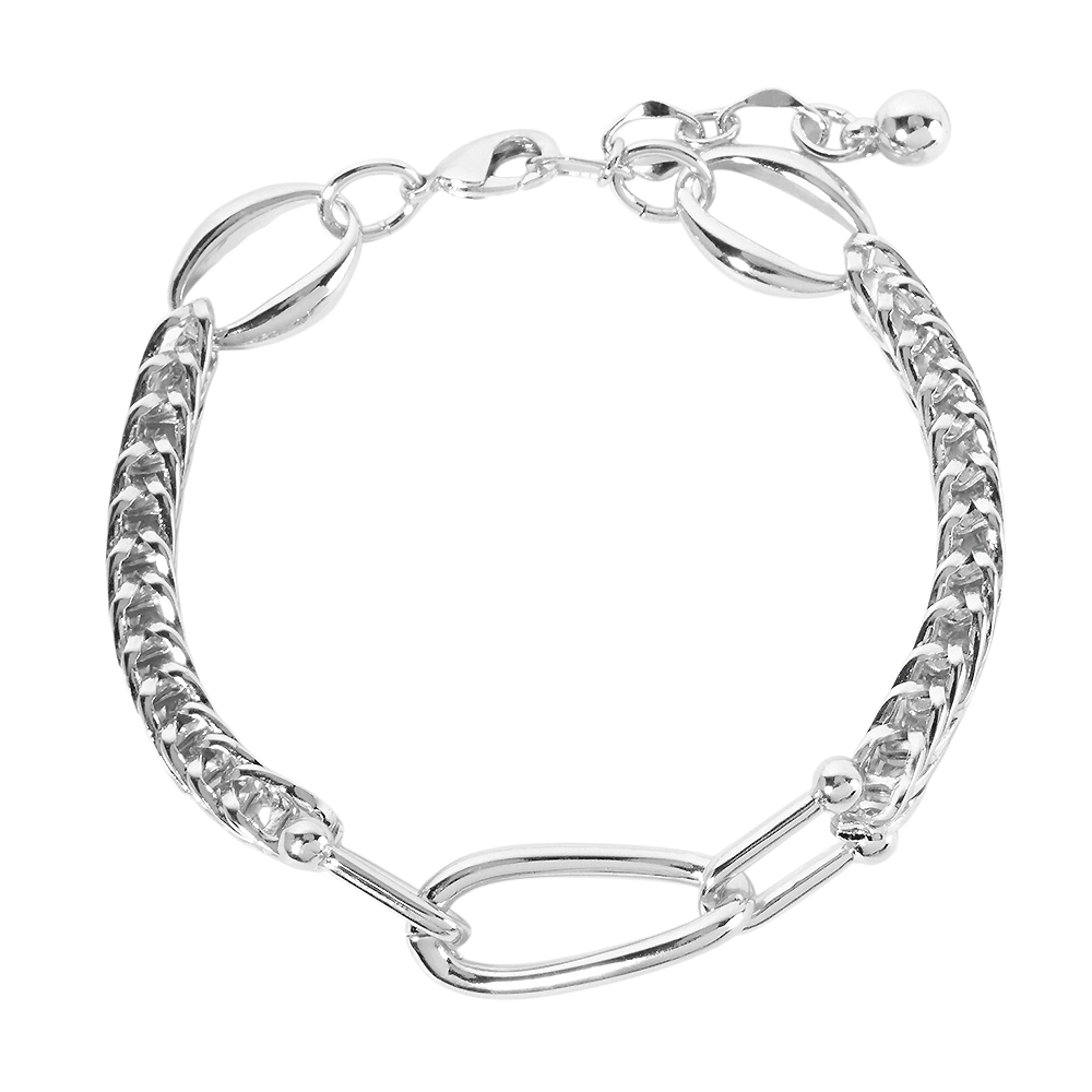 White Gold Dipped Chunky Oval Link Pointed Chain Bracelet
