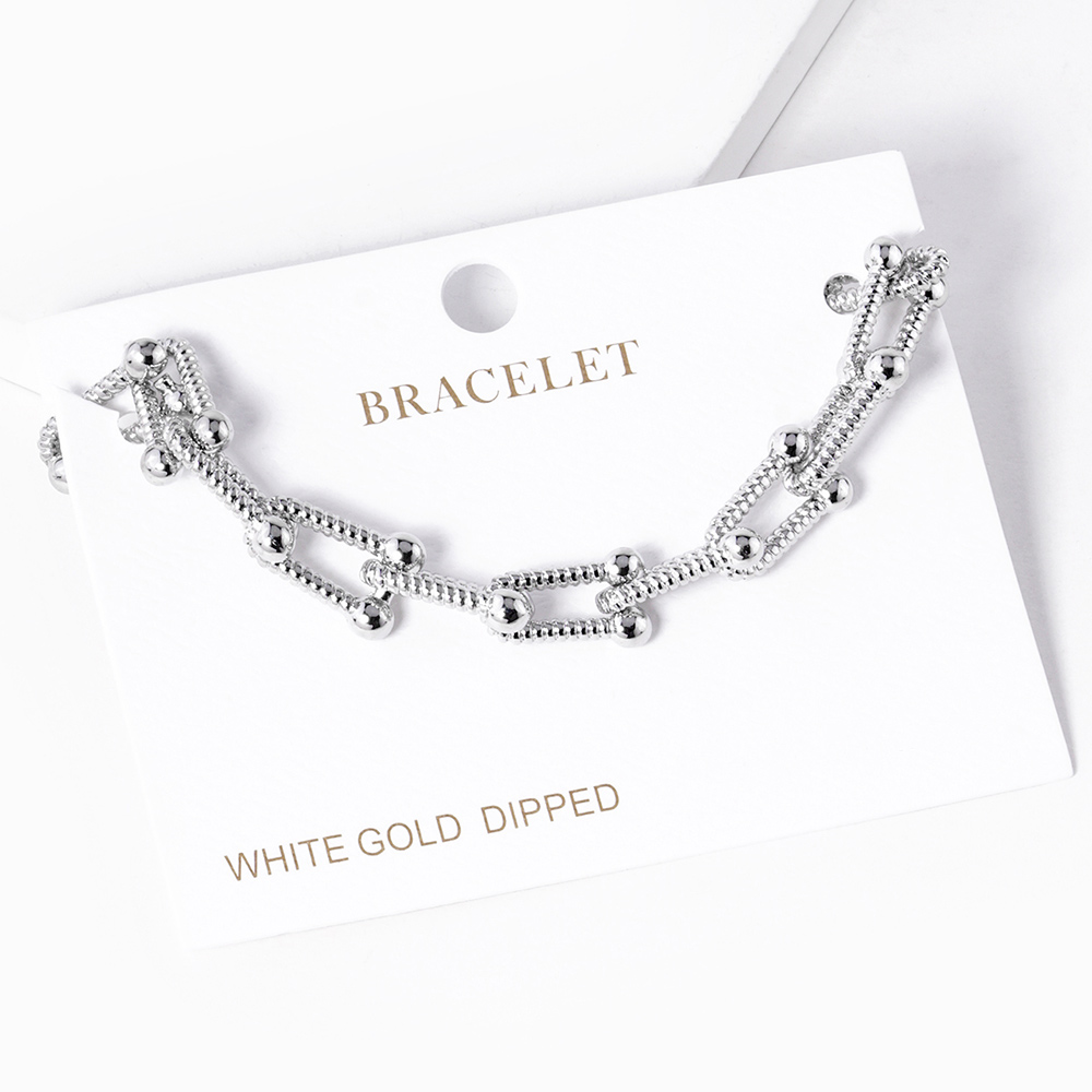 White Gold Dipped Hardware Textured Metal Chain Bracelet