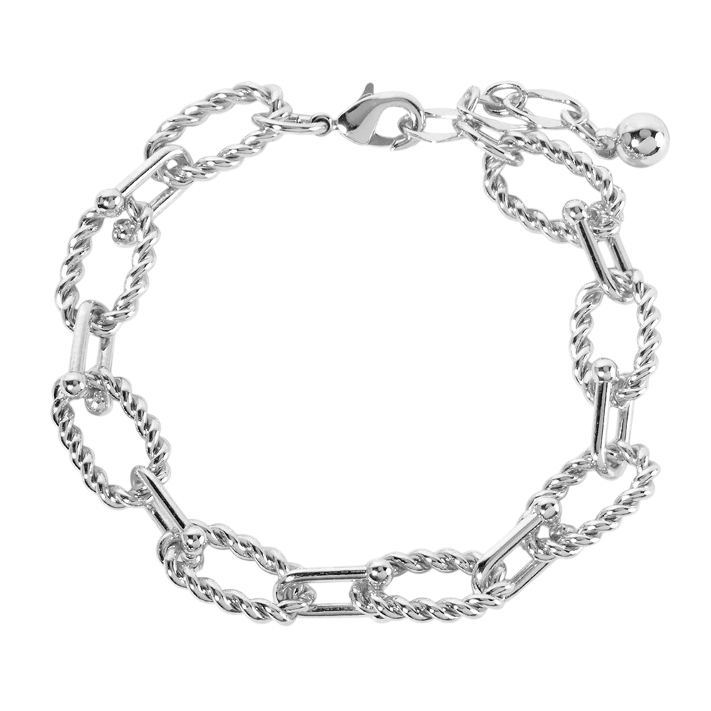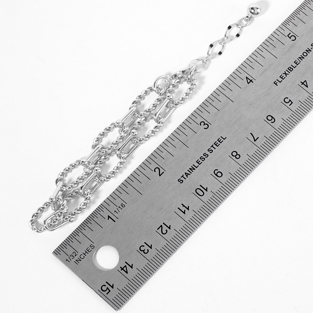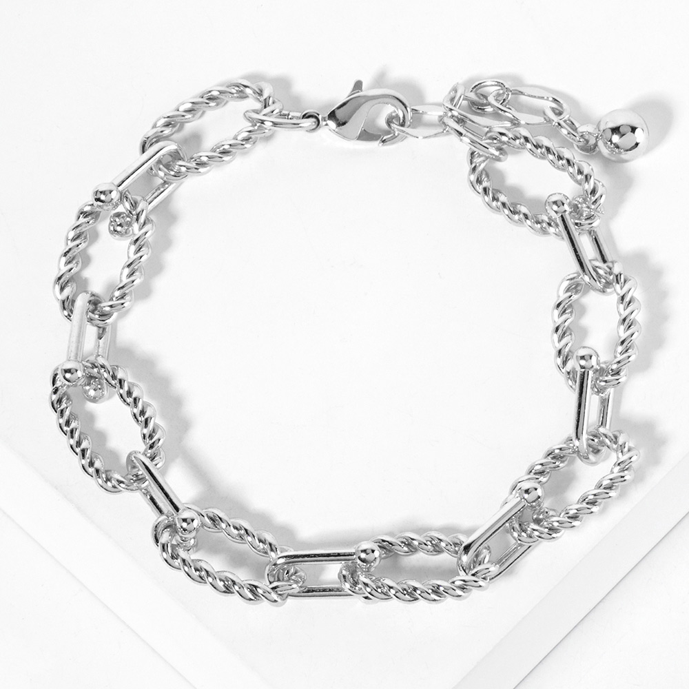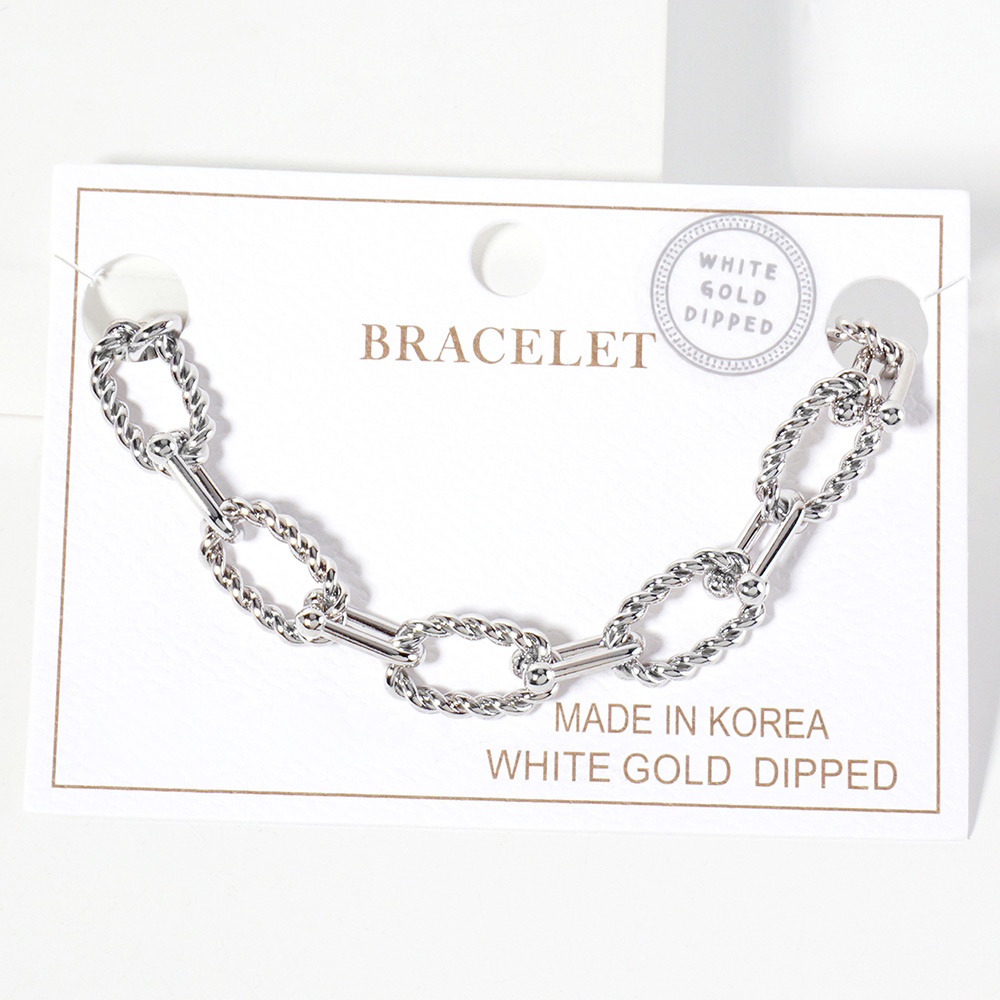 White Gold Dipped Textured Oval Link Chain Bracelet
