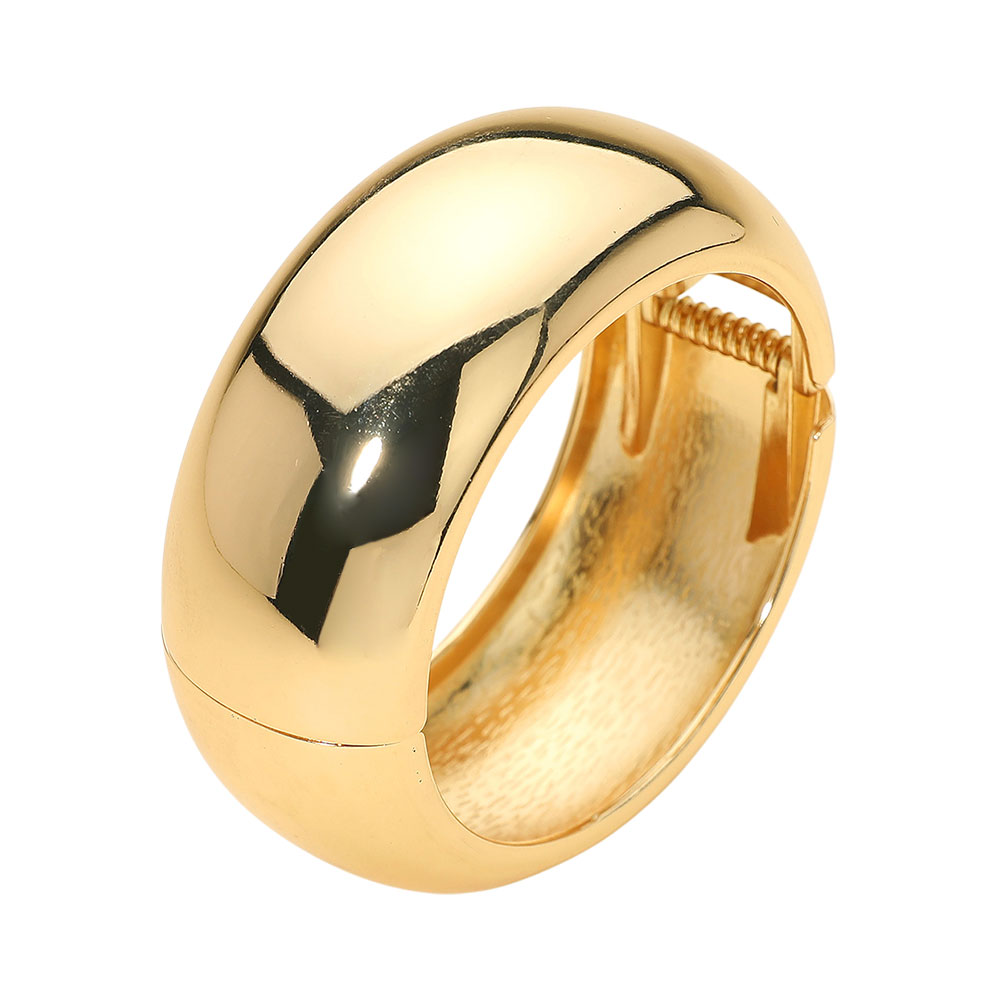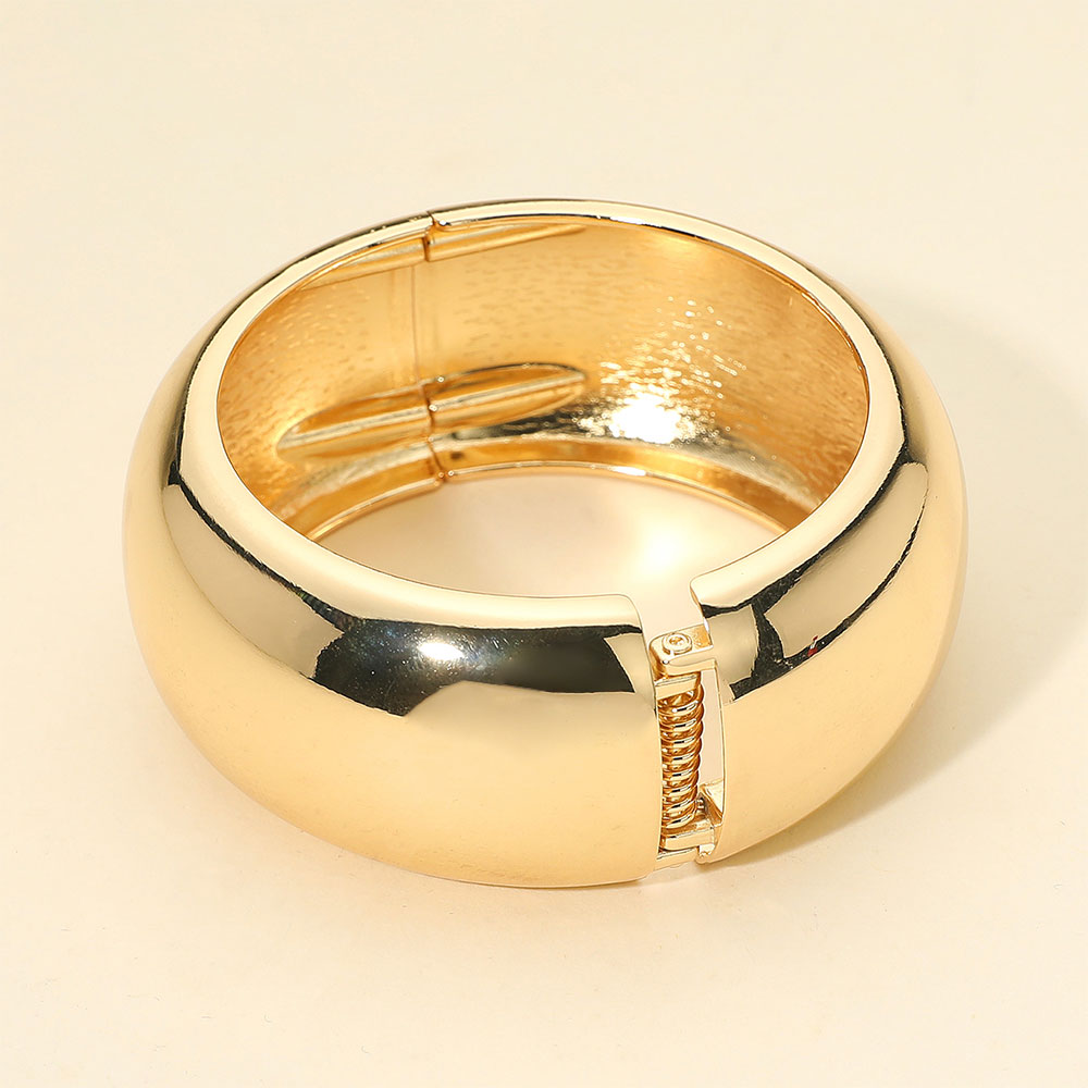 Details • Size : 1.25" H, 2.4" D • Hinged Closure • Elevate your accessories with this wide dome bangle bracelet featuring a smooth, polished finish. Its bold, rounded design makes a timeless statement, perfect for stacking or wearing solo. A versatile piece that transitions seamlessly from casual wear to elegant evening looks with effortless style. • Lead and Nickel Compliant