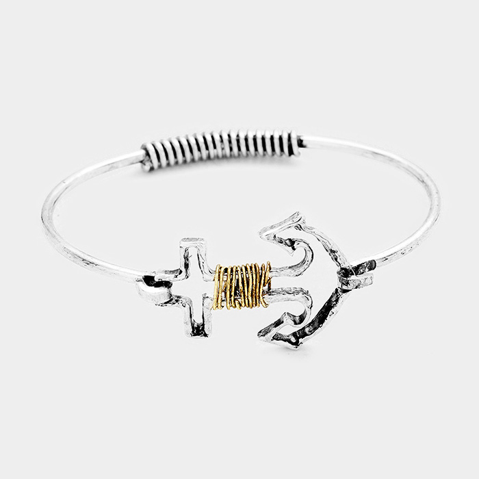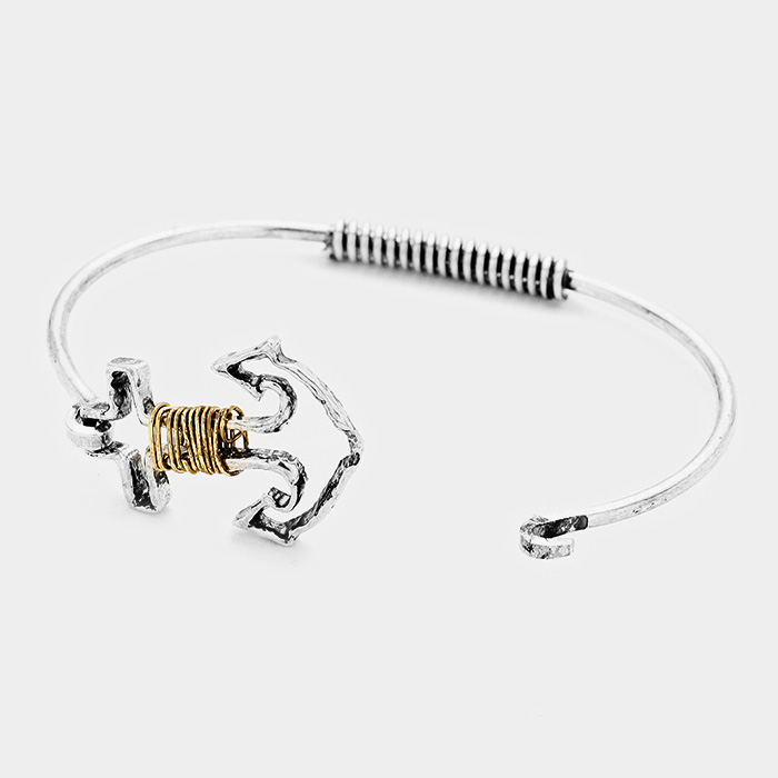 Sea Glass Metal Anchor Dangle Stretch Ring