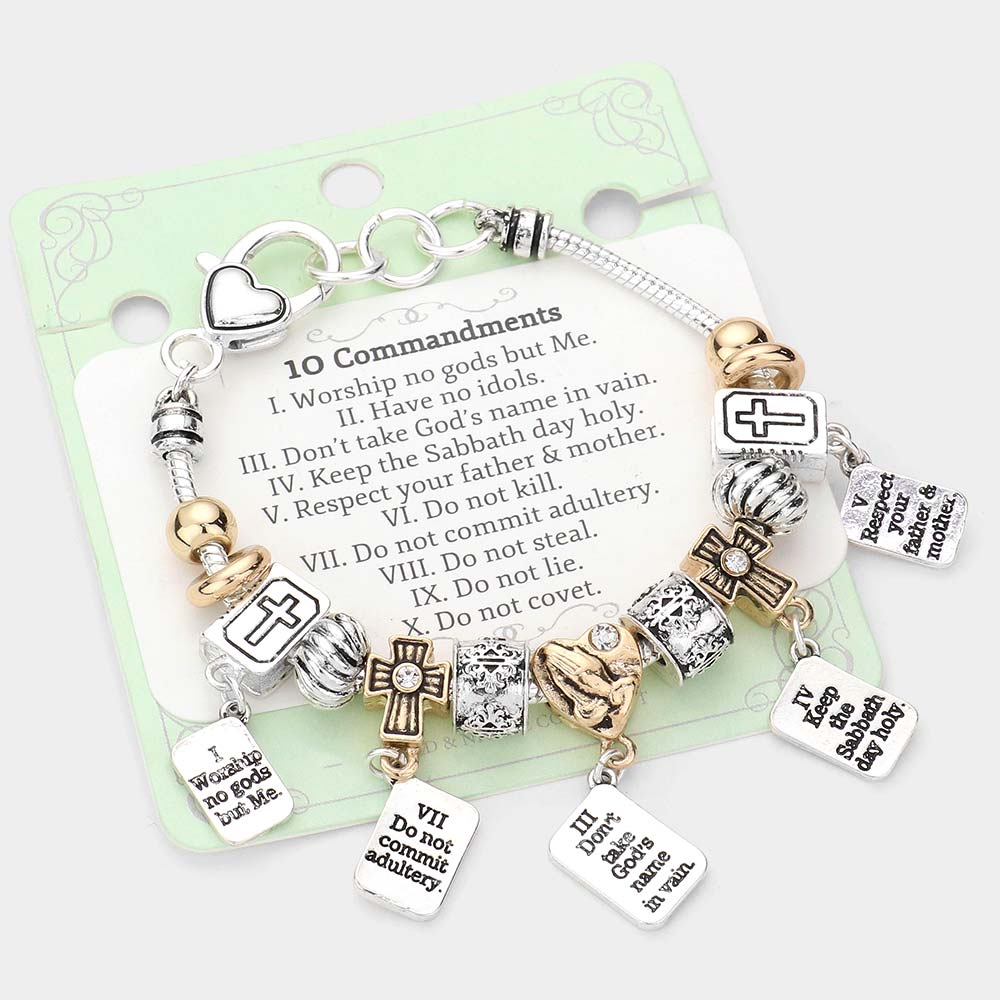 10 Commandments Heart Cross Bible Multi Bead Bracelet