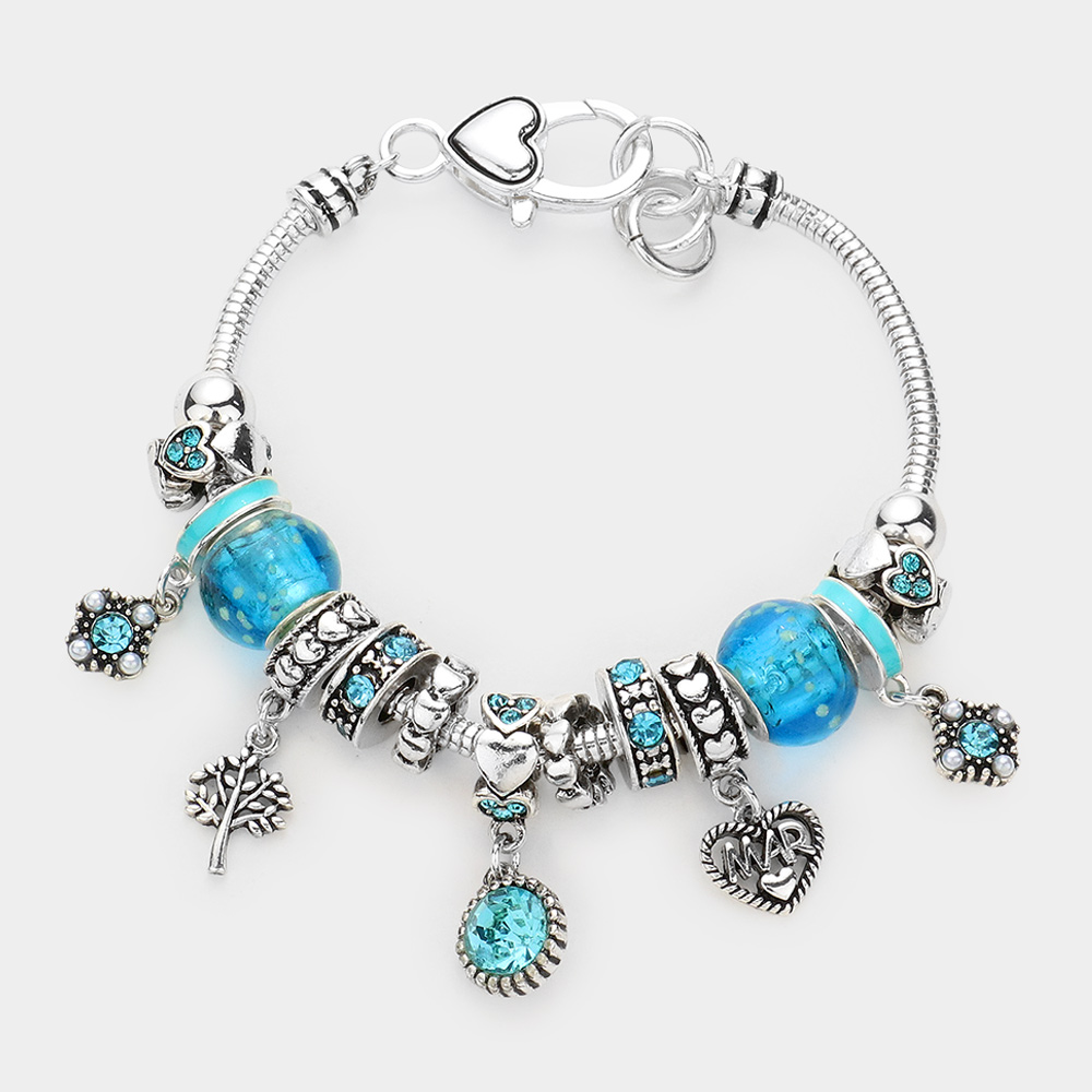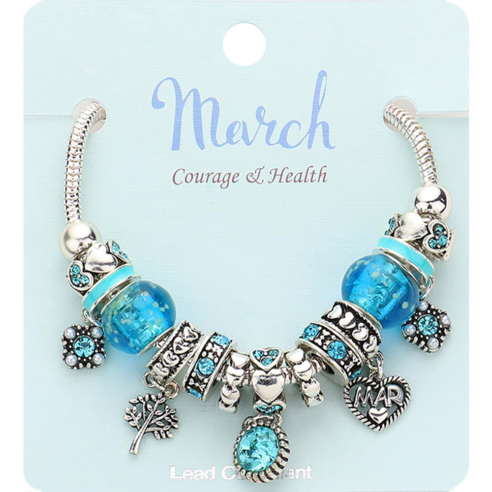 Details • Size : 1" H, 7.5" + 1" L • Lobster Clasp Closure • Celebrate March birthdays with this elegant charm bracelet symbolizing courage and health. Featuring detailed beads and meaningful charms, it’s a thoughtful gift for birthdays or special milestones.