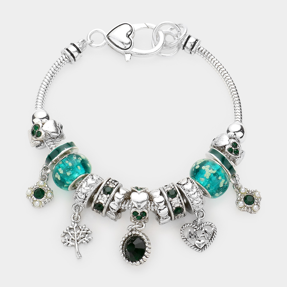 Happiness Fertility May Heart Birthday Stone Charm Bracelet