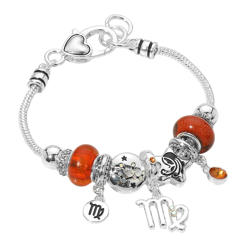 Details • Size : 0.25" H, 7.25" + 1" L • Charm Size : 1.2" L • August 23 - September 22 • Lobster Clasp Closure • Express your reliable and diligent Virgo nature with this zodiac charm bracelet. Features Virgo symbol charms and celestial accents, making it a meaningful accessory for astrology lovers and thoughtful gifts. • Lead and Nickel Compliant