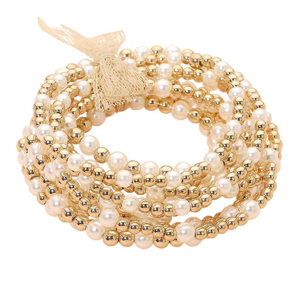 Details • Size : 2" H • Stretchable • This multi-strand pearl bead bracelet set brings elegant charm to any outfit. Featuring layered beading and a soft bow accent, it offers a refined, feminine touch perfect for elevating both everyday looks and special-occasion styles with timeless sophistication. • Lead and Nickel Compliant