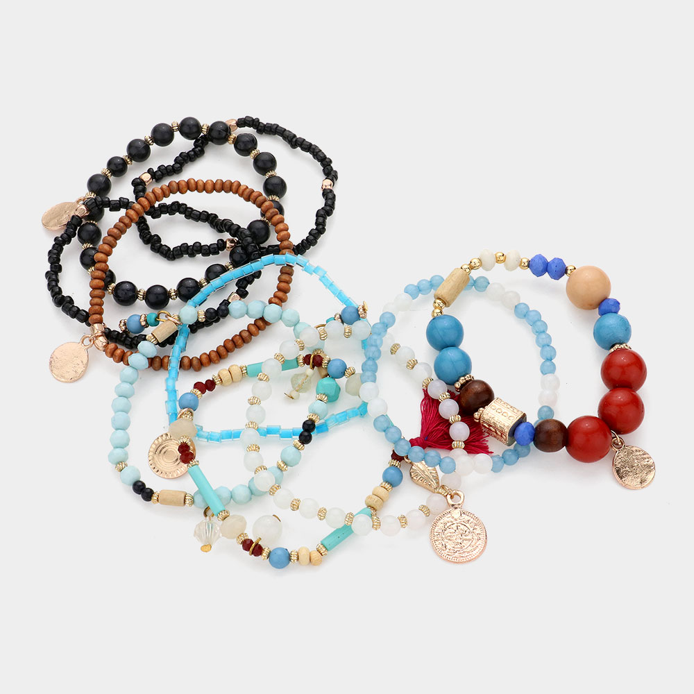 10PCS - Strand Bead Tassel Layered Bracelet