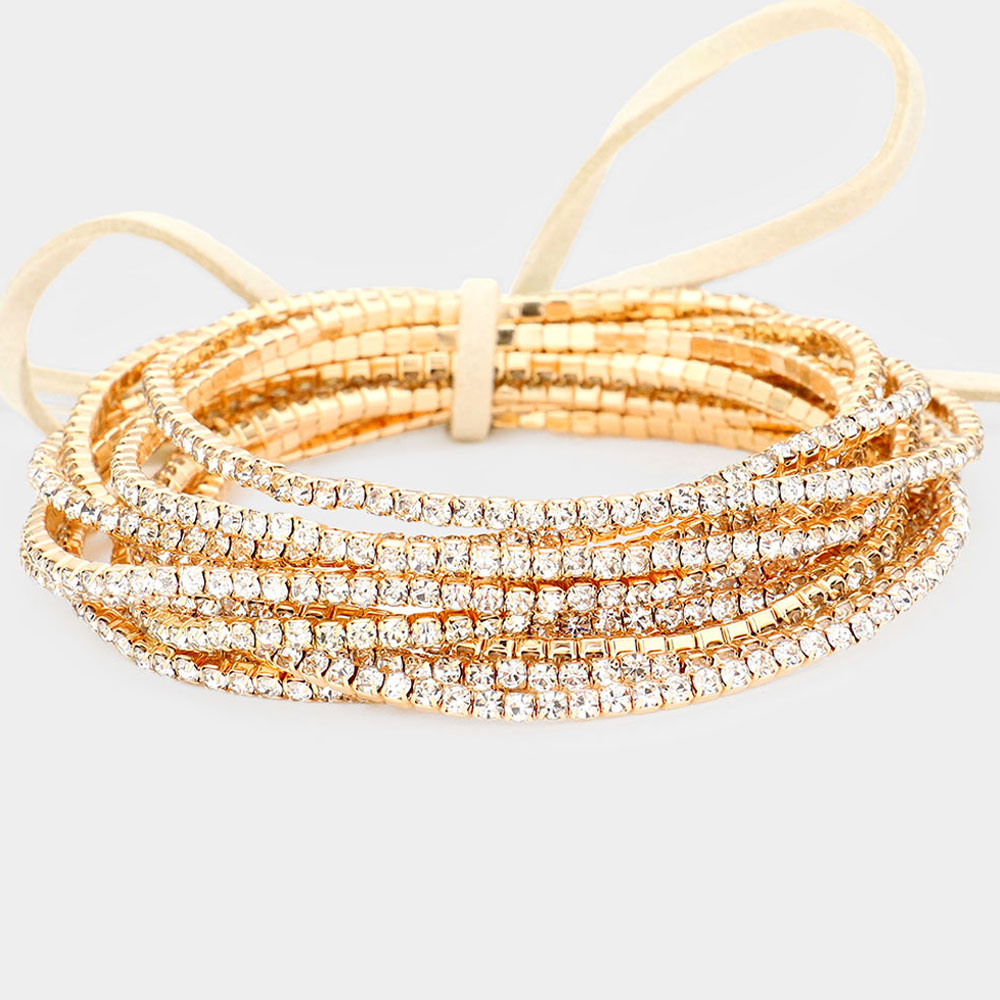 12PCS - Ribbon Pearl Rhinestone Layered Stretch Bracelets