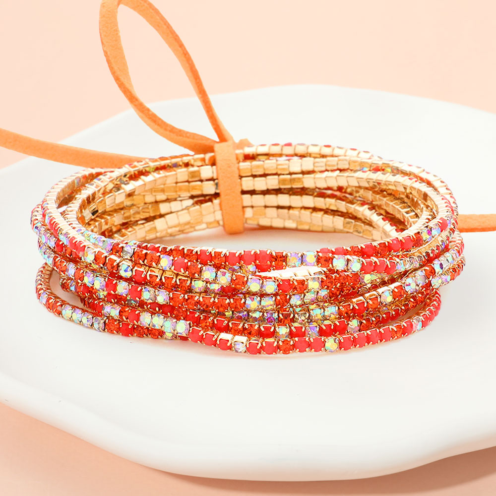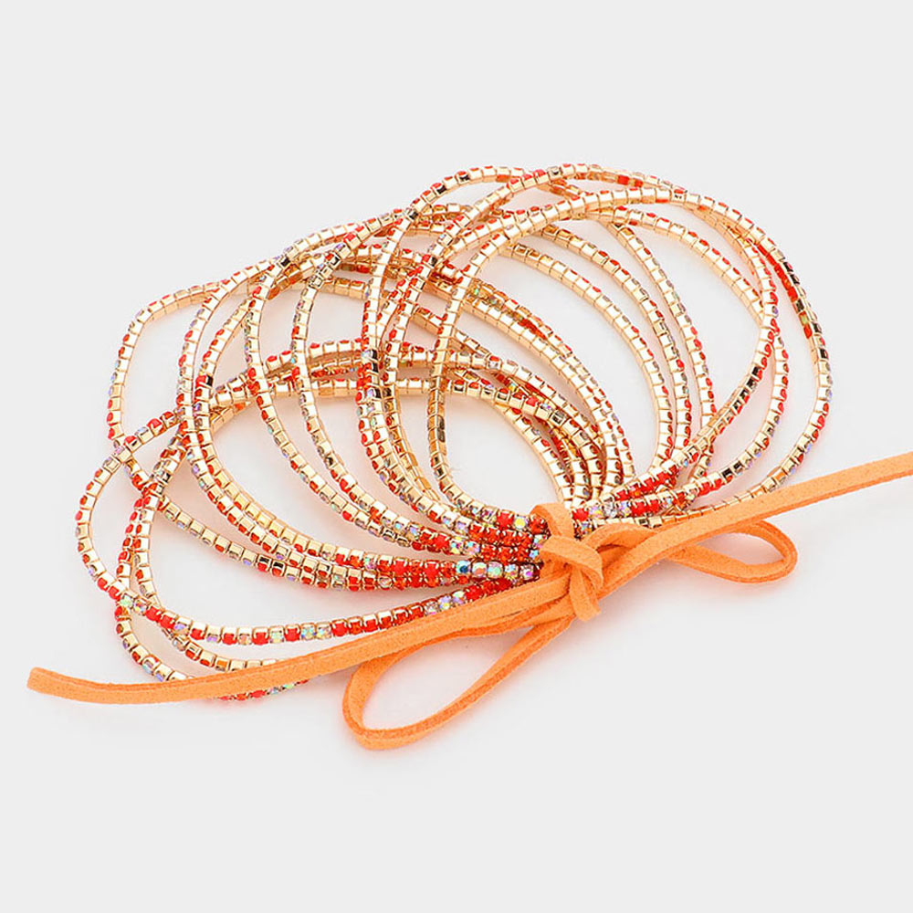 12PCS - Ribbon Pearl Rhinestone Layered Stretch Bracelets