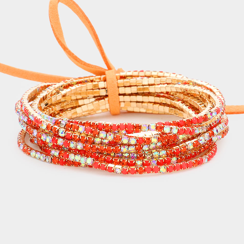 • Colorful wrap bracelet featuring multiple strands with shimmering bead accents and an adjustable tie closure. A playful accessory perfect for casual and festive looks.