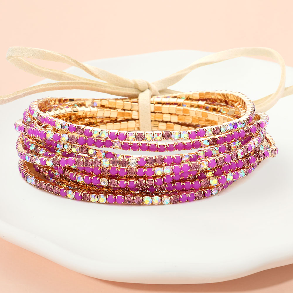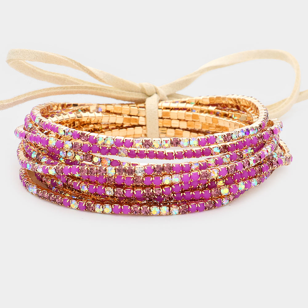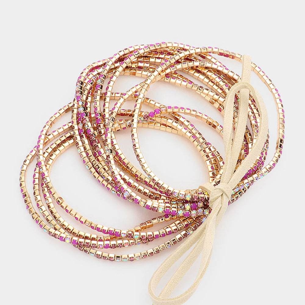 12PCS - Ribbon Pearl Rhinestone Layered Stretch Bracelets