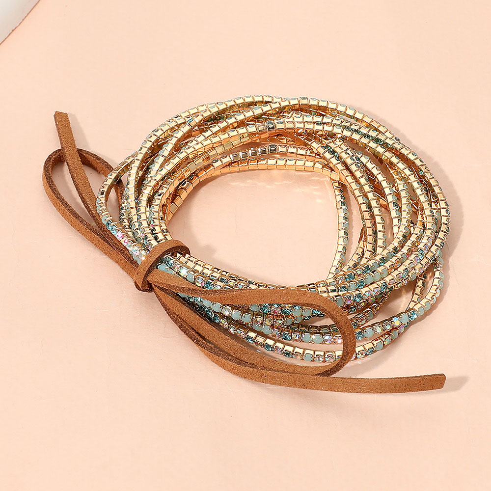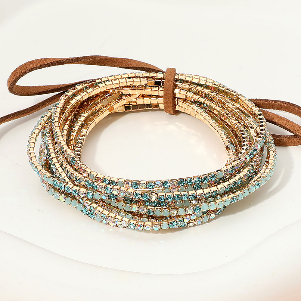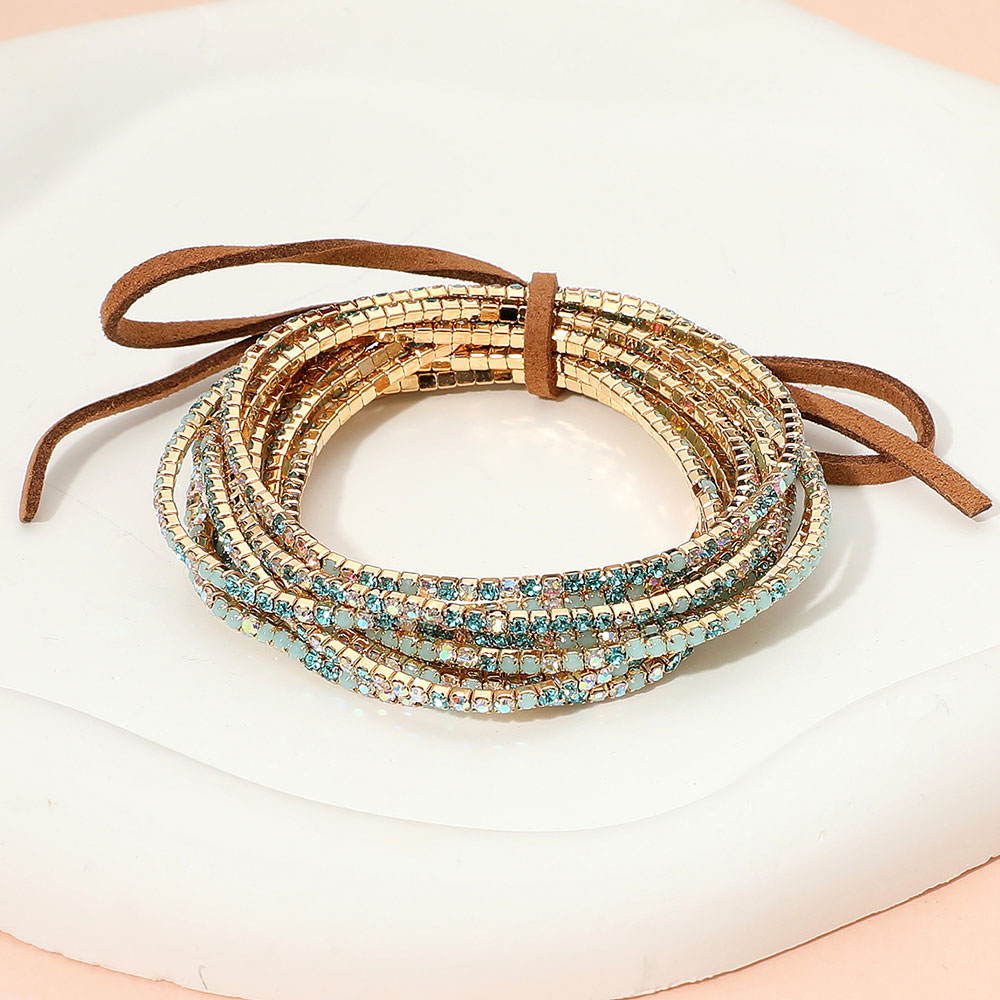 12PCS - Ribbon Pearl Rhinestone Layered Stretch Bracelets