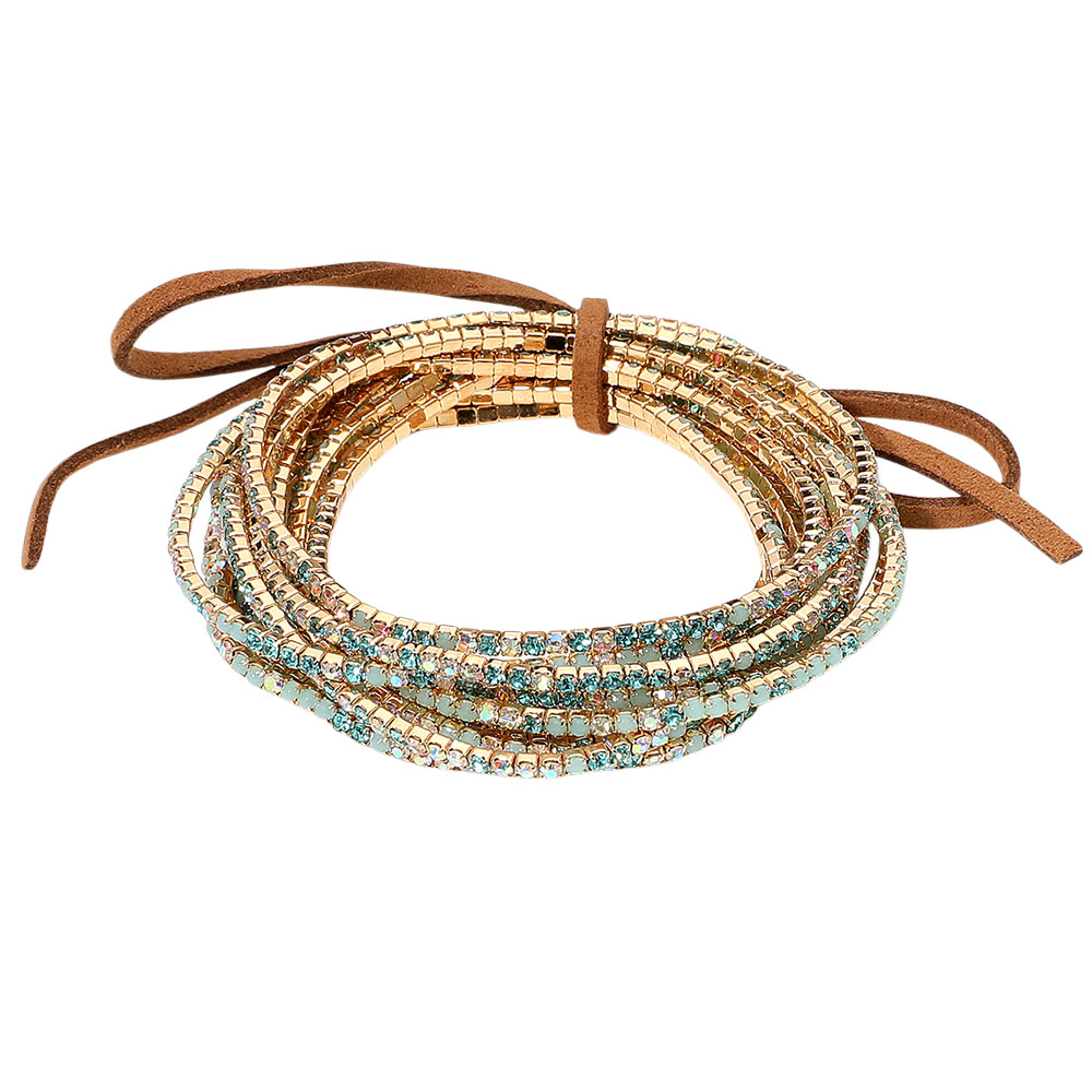 • Colorful wrap bracelet featuring multiple strands with shimmering bead accents and an adjustable tie closure. A playful accessory perfect for casual and festive looks.
