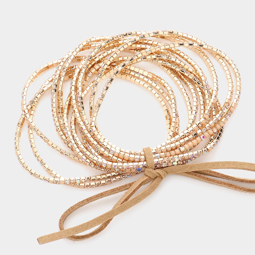 12PCS - Ribbon Pearl Rhinestone Layered Stretch Bracelets
