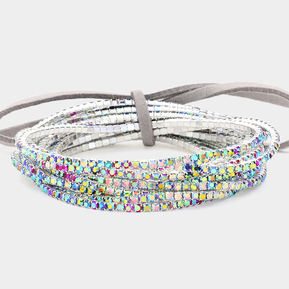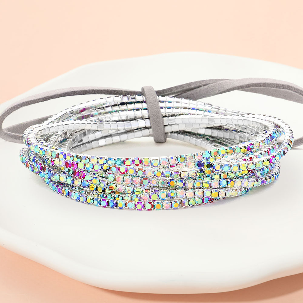 12PCS - Ribbon Colorful Rhinestone Layered Stretch Bracelets