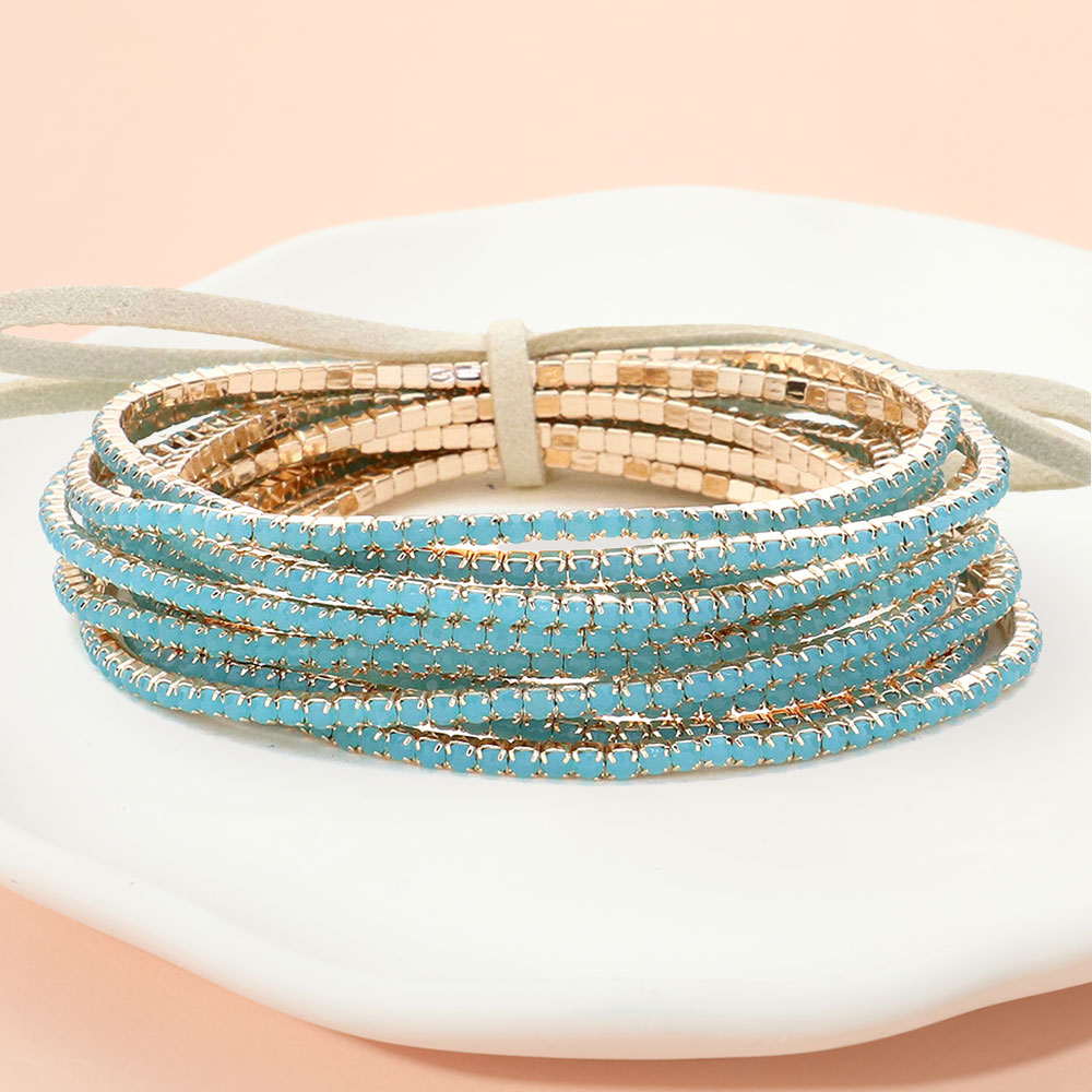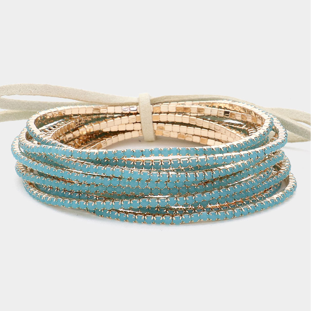 12PCS - Ribbon Colorful Rhinestone Layered Stretch Bracelets