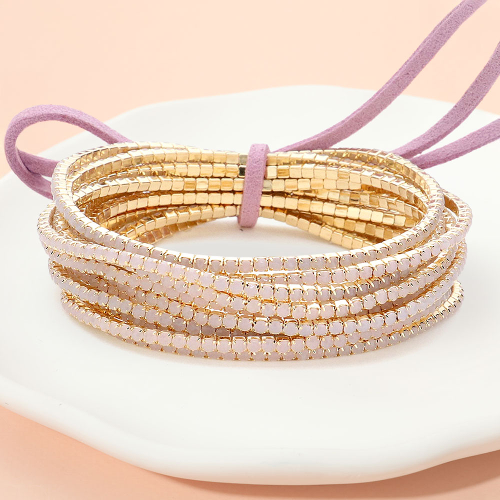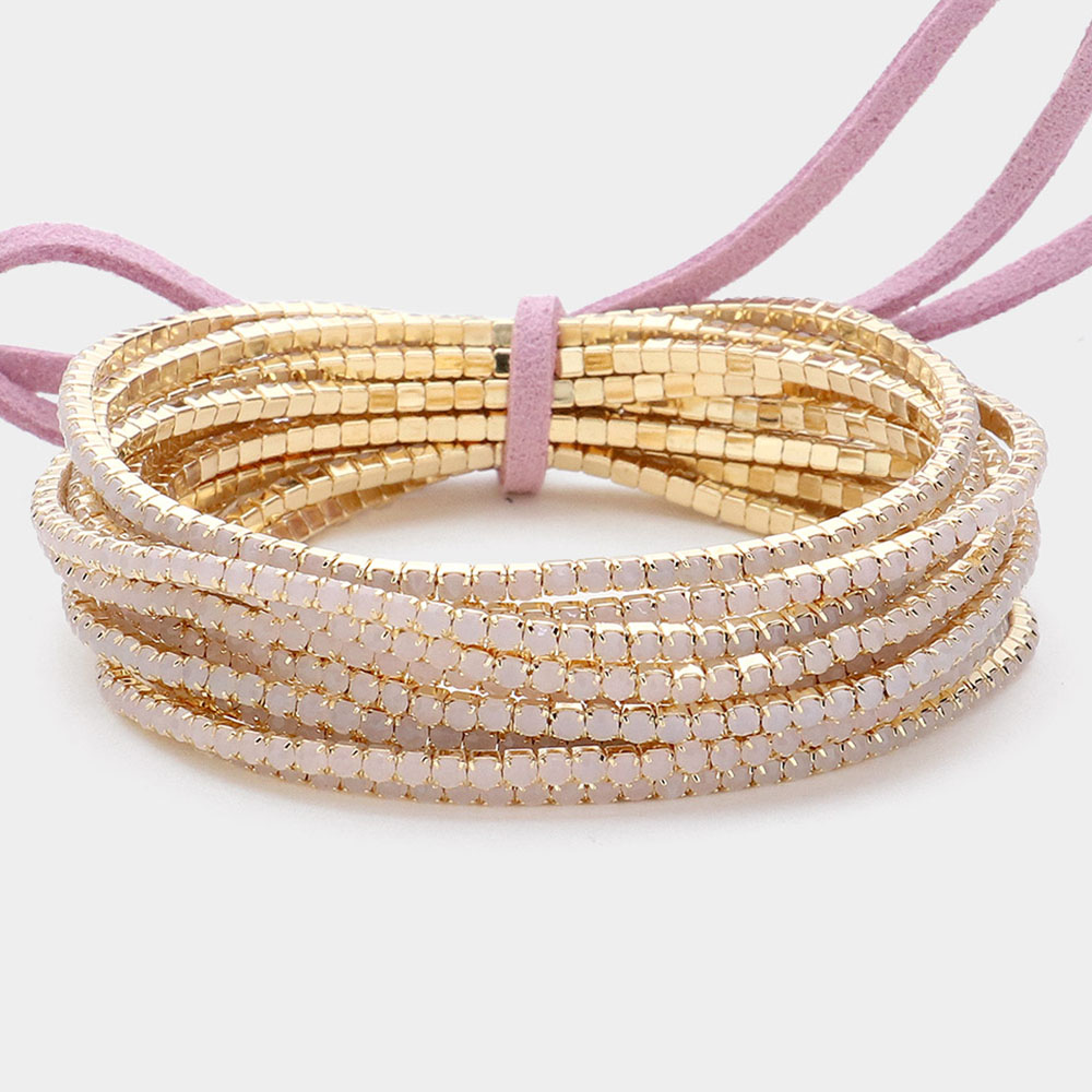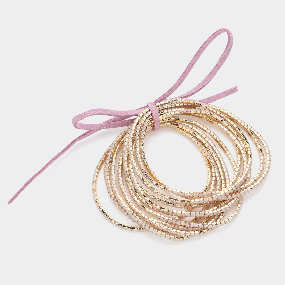 12PCS - Ribbon Colorful Rhinestone Layered Stretch Bracelets
