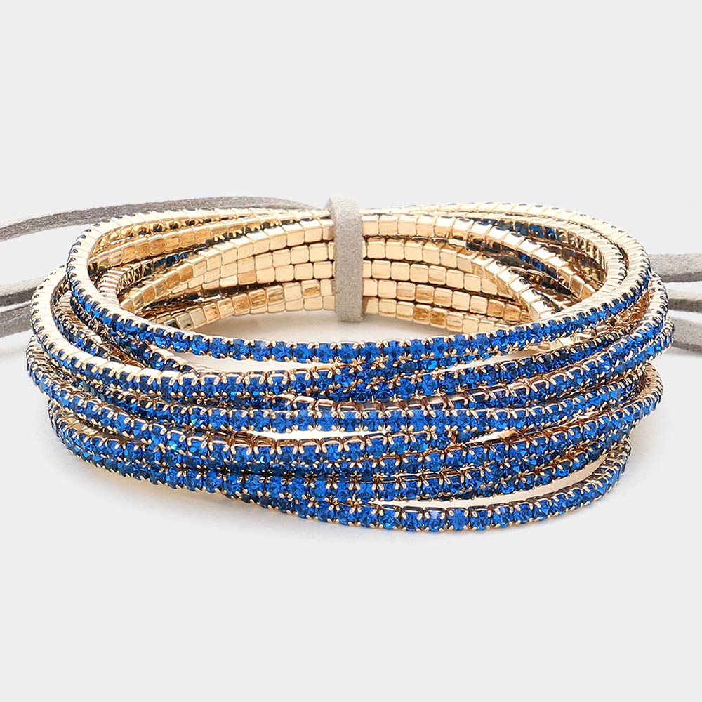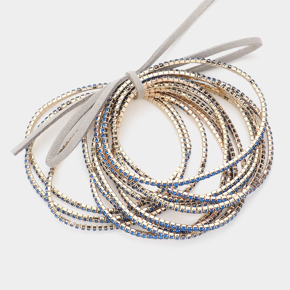 12PCS - Ribbon Colorful Rhinestone Layered Stretch Bracelets