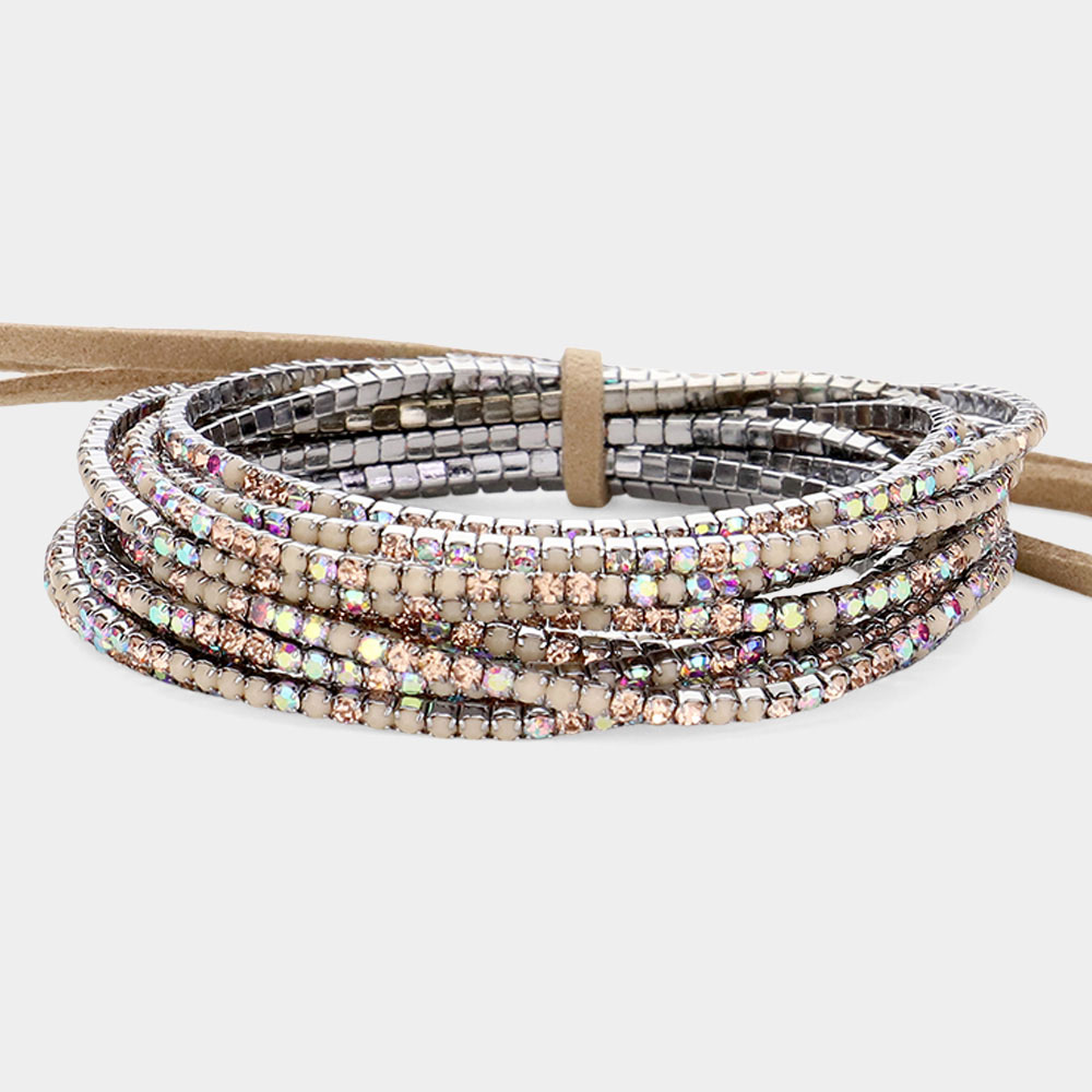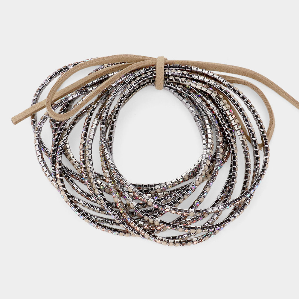 12PCS - Ribbon Colorful Rhinestone Layered Stretch Bracelets