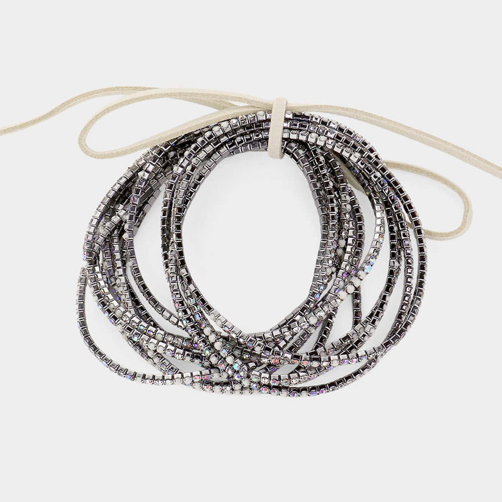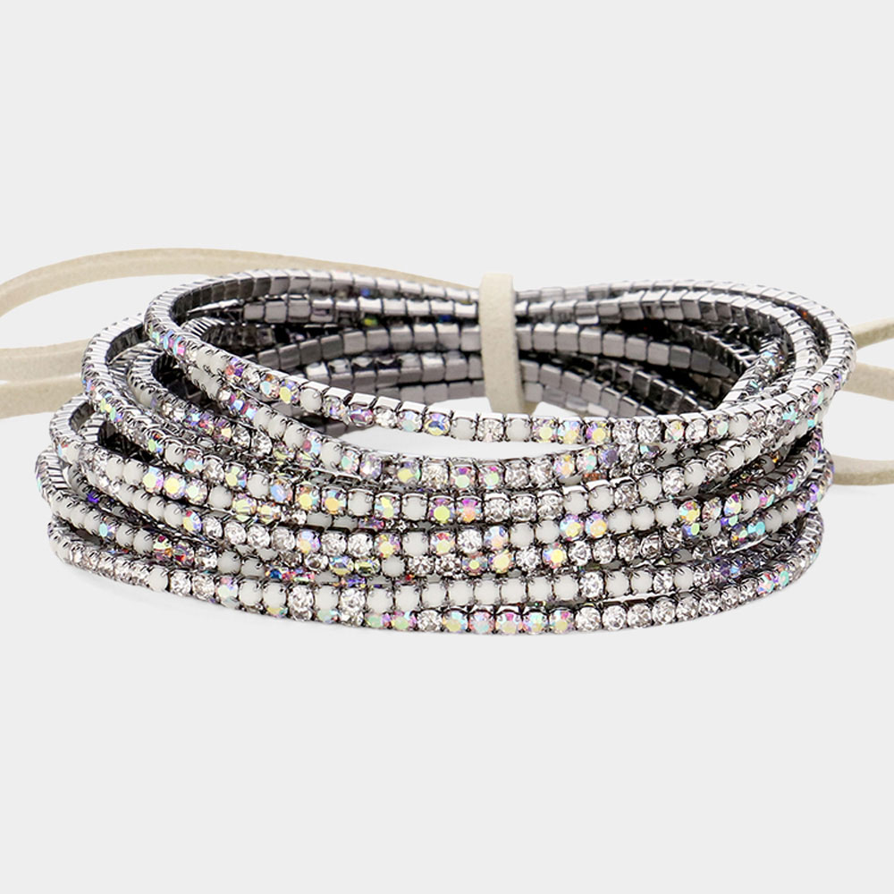 12PCS - Ribbon Colorful Rhinestone Layered Stretch Bracelets