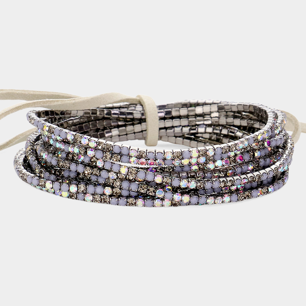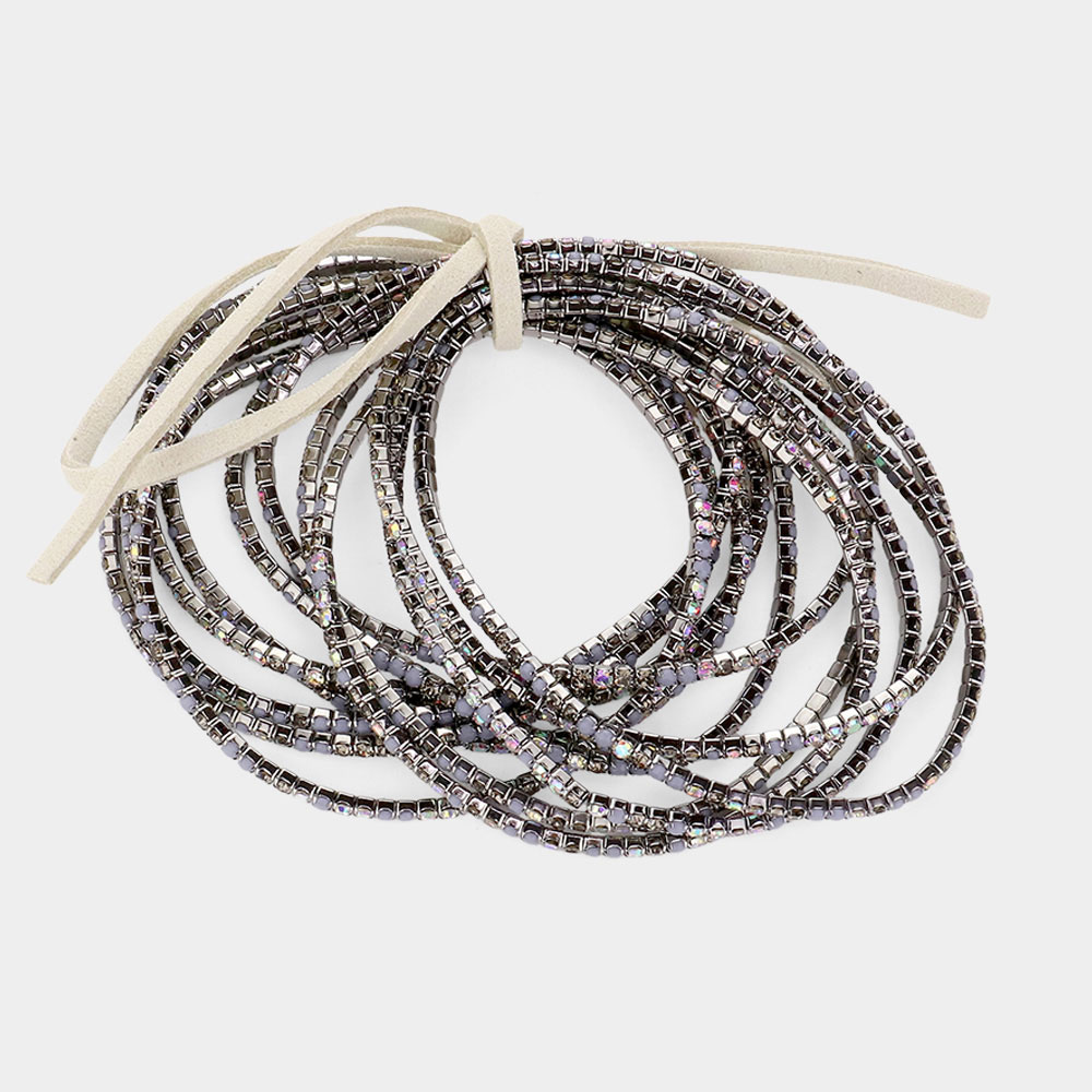 12PCS - Ribbon Colorful Rhinestone Layered Stretch Bracelets