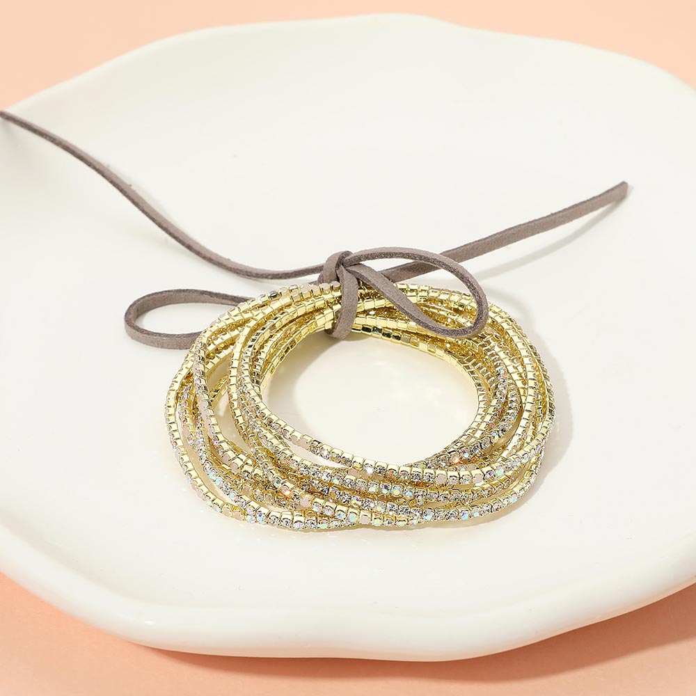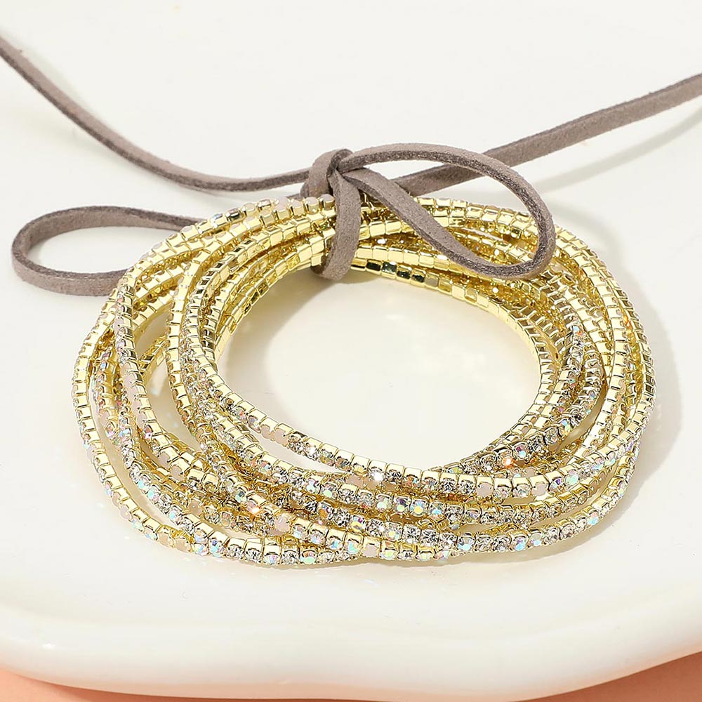 12PCS - Ribbon Pearl Rhinestone Layered Stretch Bracelets