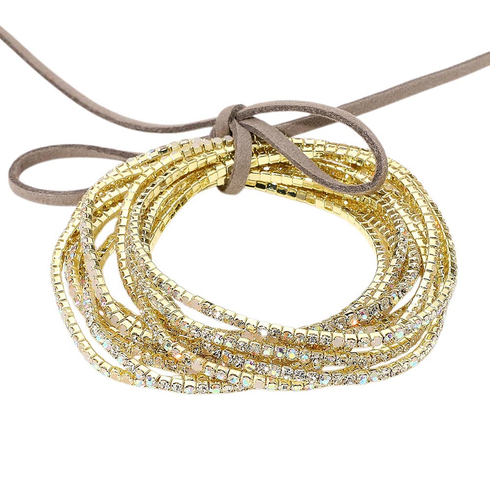 • Colorful wrap bracelet featuring multiple strands with shimmering bead accents and an adjustable tie closure. A playful accessory perfect for casual and festive looks.