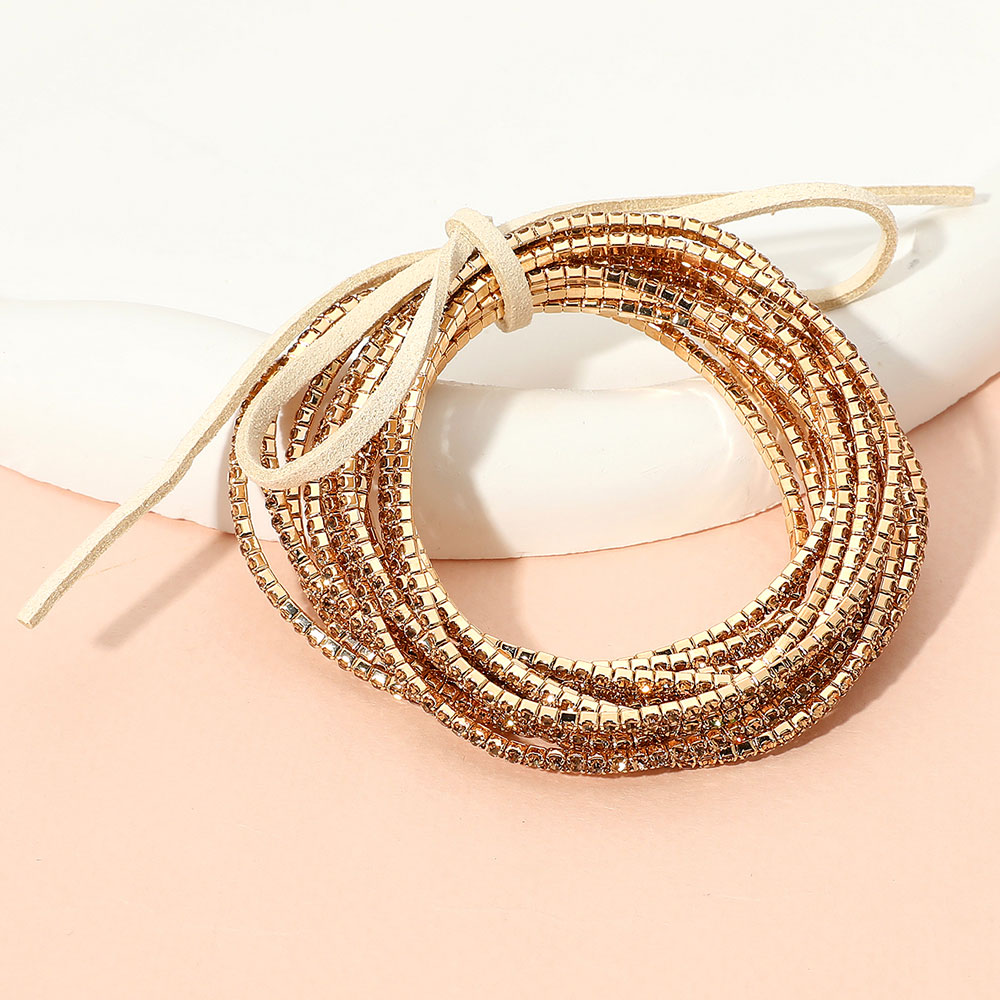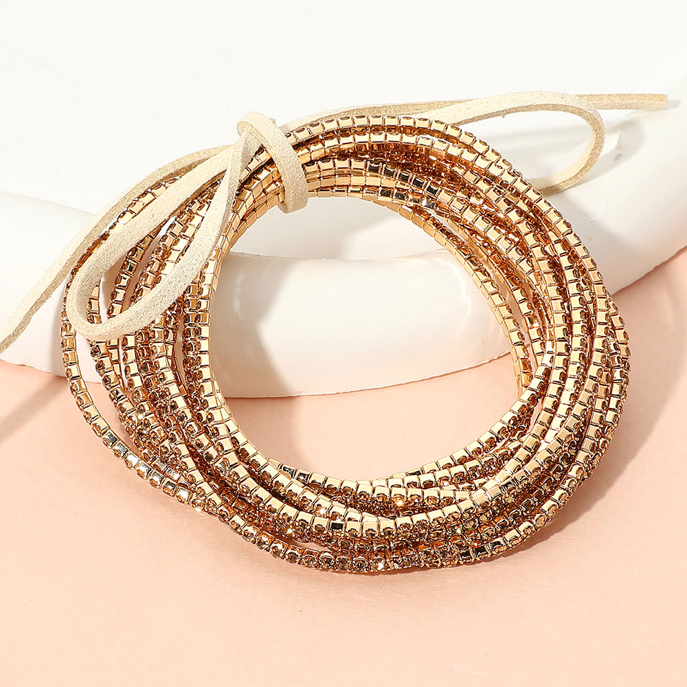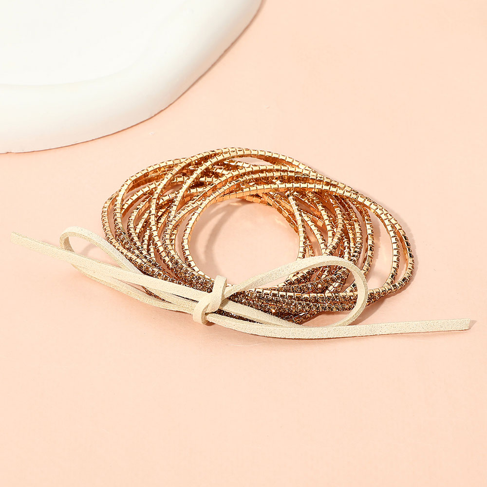 12PCS - Ribbon Pearl Rhinestone Layered Stretch Bracelets