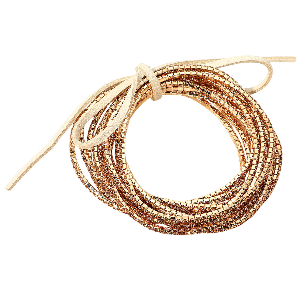 • Colorful wrap bracelet featuring multiple strands with shimmering bead accents and an adjustable tie closure. A playful accessory perfect for casual and festive looks.
