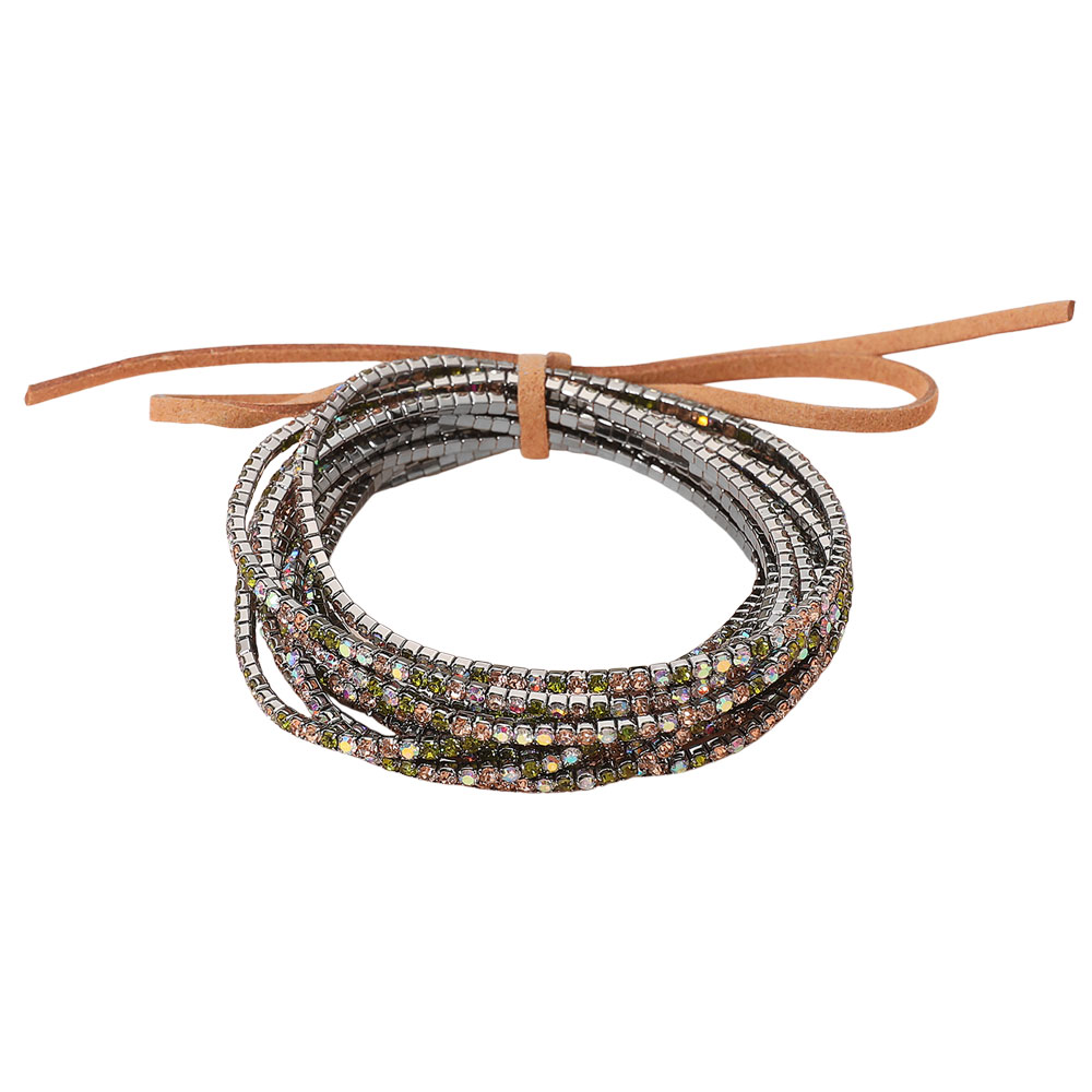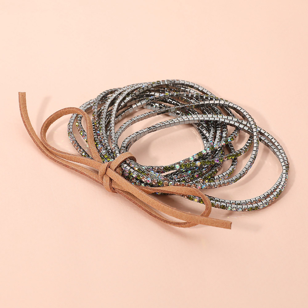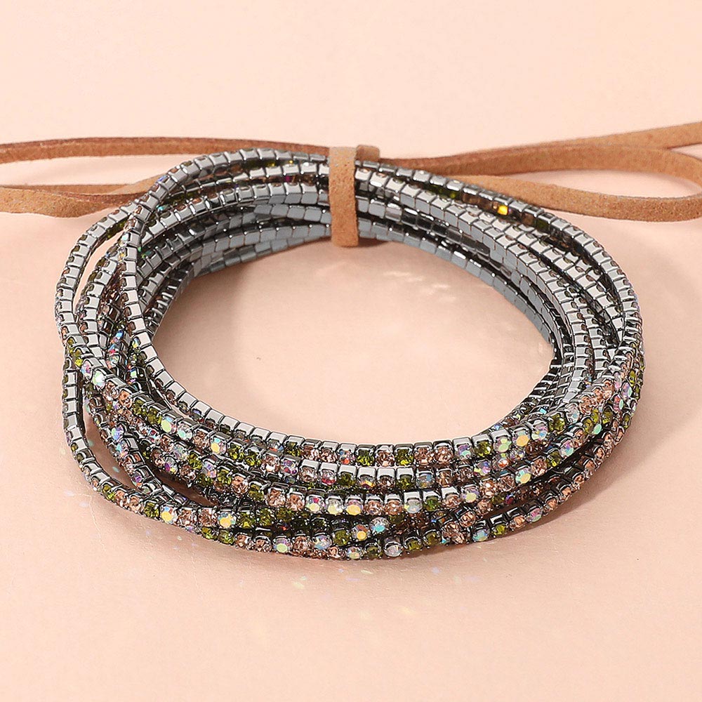 12PCS - Ribbon Colorful Rhinestone Layered Stretch Bracelets
