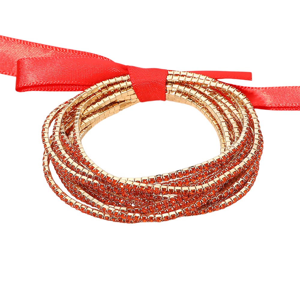 12PCS - Ribbon Slim Rhinestone Stretch Multi Layered Bracelet
