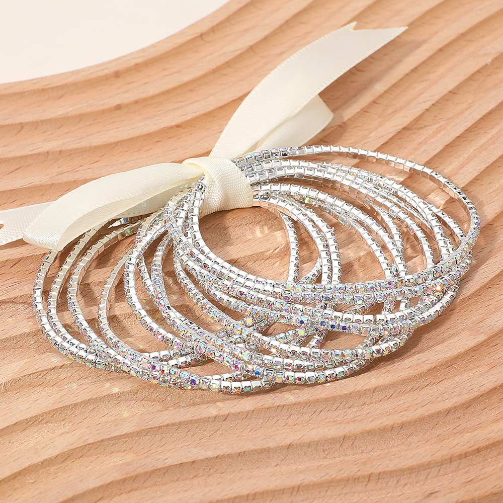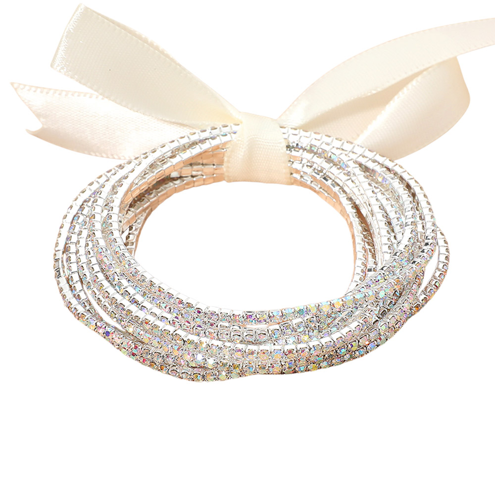 12PCS - Ribbon Slim Rhinestone Stretch Multi Layered Bracelet