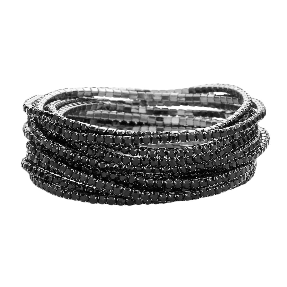 Details • Size : 1.2" H • Stretchable • Complete your look with this set of 12 stackable stretch bracelets. Sleek and versatile, these lightweight stretch bangles feature a shimmering design that layers beautifully for casual or dressy outfits, offering endless styling possibilities with modern elegance.