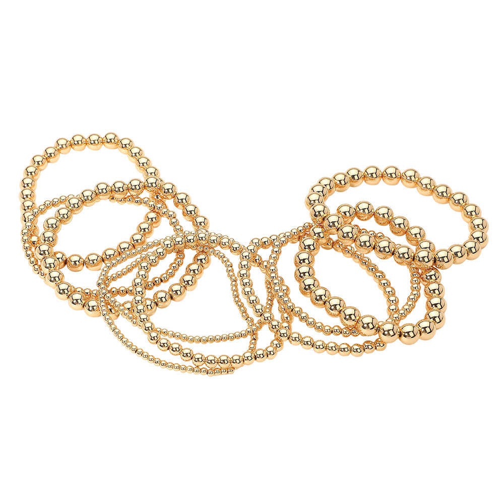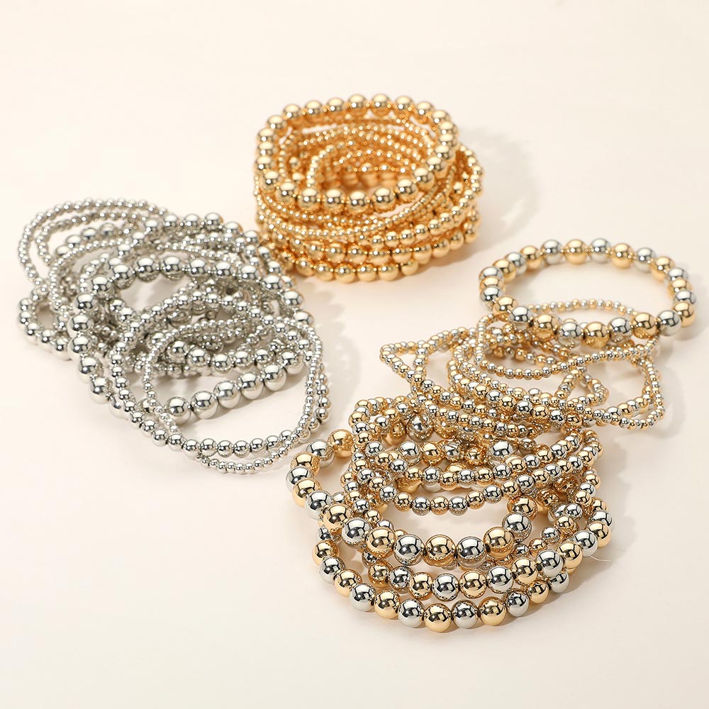 13PCS - Metal Ball Beaded Stretch Multi Layered Bracelets
