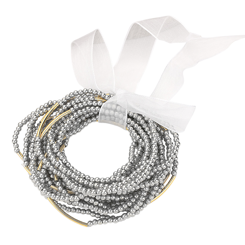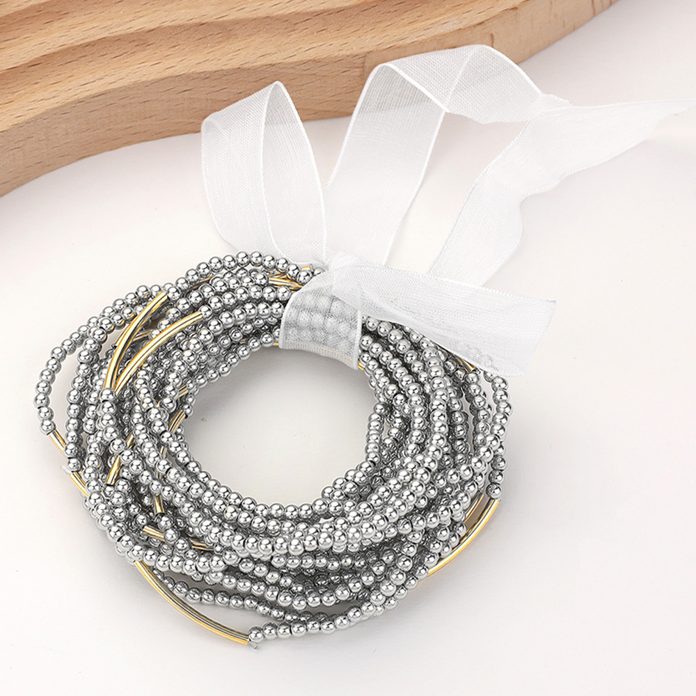 20PCS - Metal Ball Beaded Stretch Multi Layered Bracelets