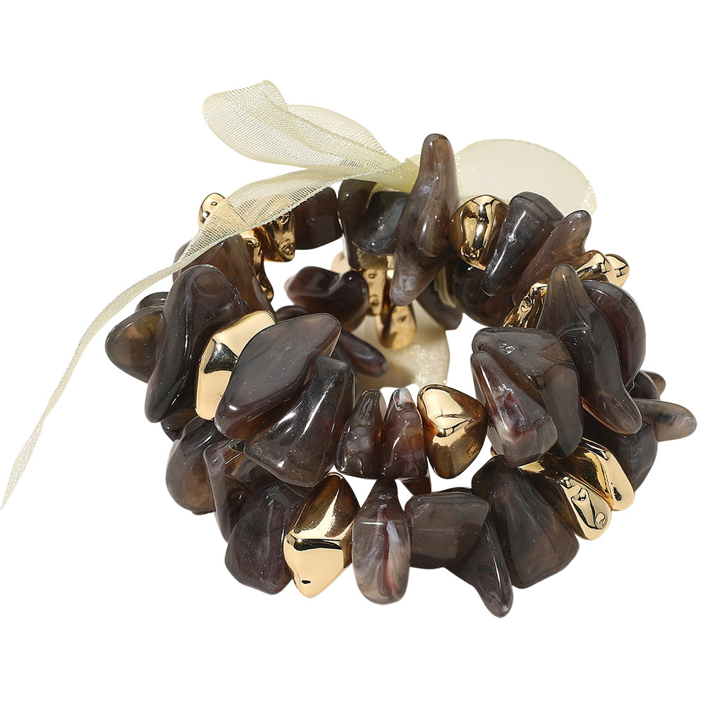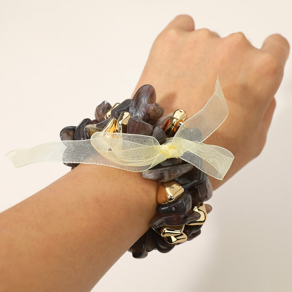 Details • Size : 1.5" H • Stretchable • Elevate your style with this chunky stone bead stretch bracelet featuring polished accents and a delicate ribbon detail. Its bold yet elegant design makes it a versatile accessory, perfect for adding texture and personality to both everyday looks and special occasions. • Lead and Nickel Compliant