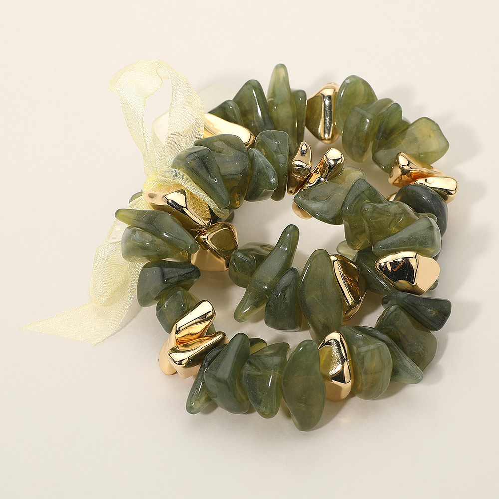 2PCS - Chunky Marbled Resin Metal Beaded Stretch Multi Layered Bracelets